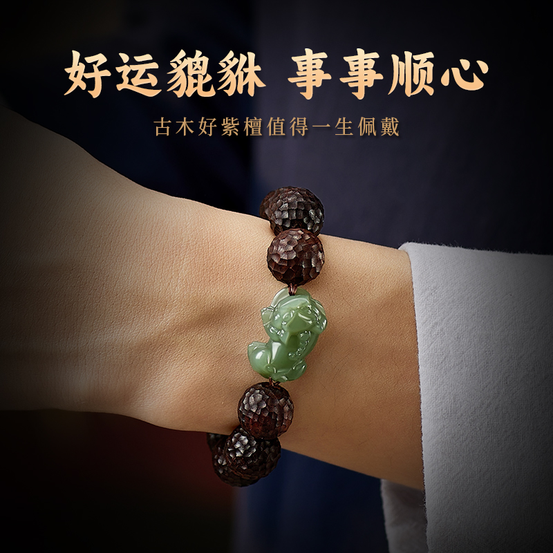 文玩手串小叶紫檀男士和田玉貔貅佛珠檀香木质盘玩转运珠手链真品