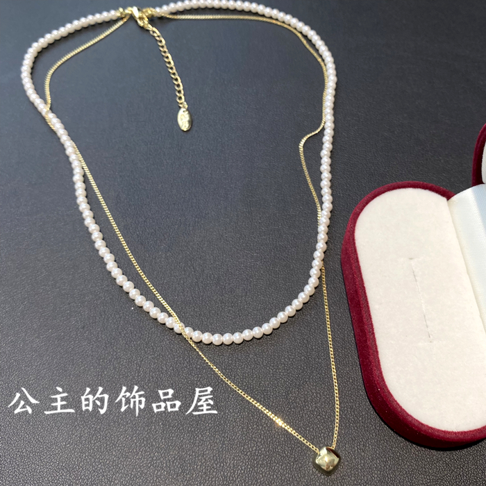 欧比雅比 韩版气质小众小米珍珠 立体小方糖 2层锁骨链短项链