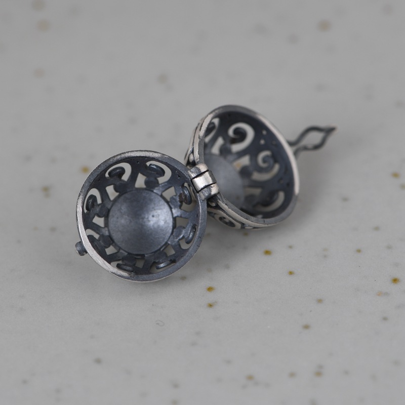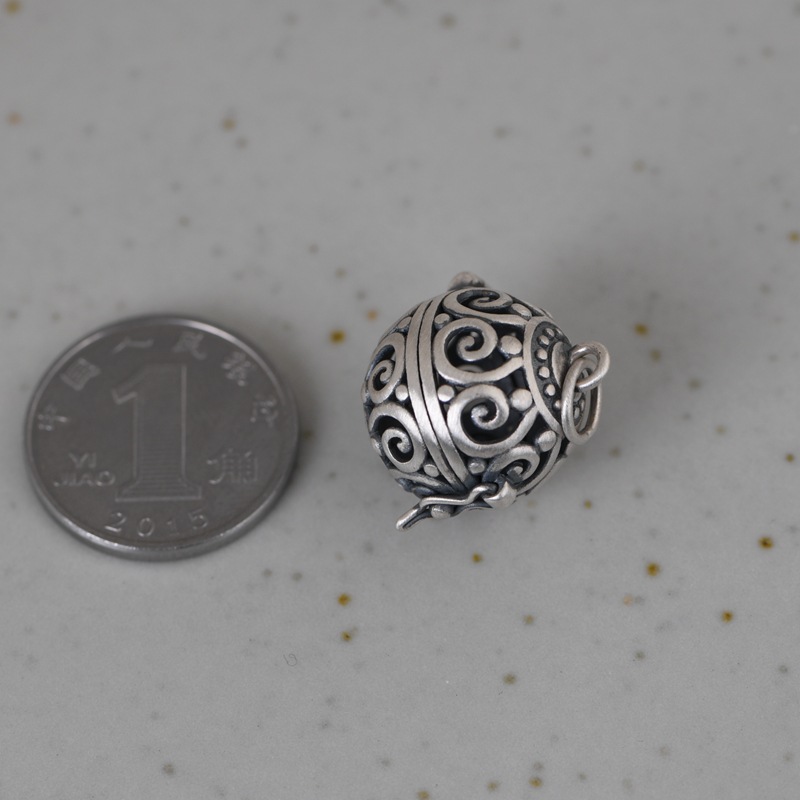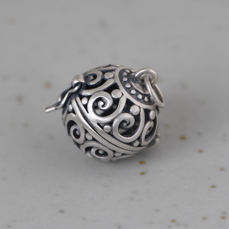 古银铺S925纯银复古风银吊坠女款手工可打开香囊香薰香料盒项链坠