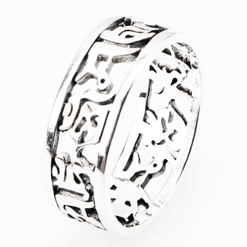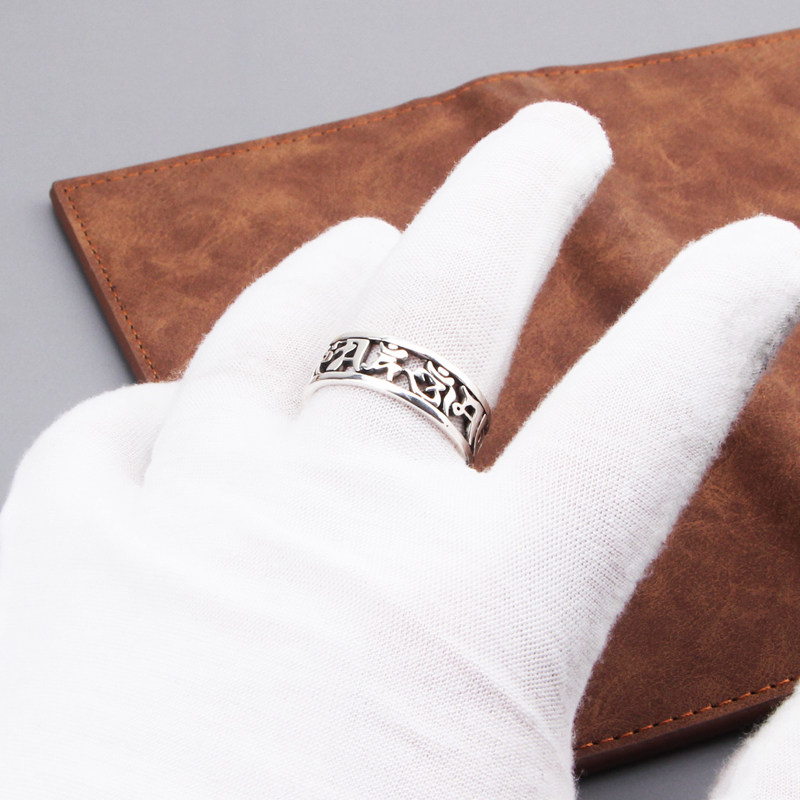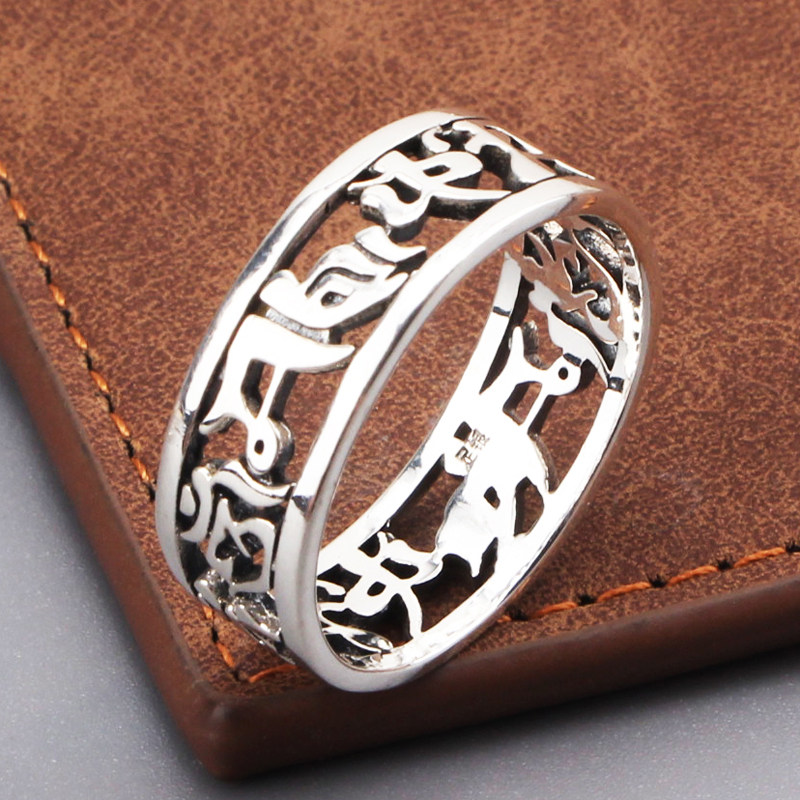 s925纯银饰光面六字真言民族风戒指情侣个性气质百搭简约纯银指环
