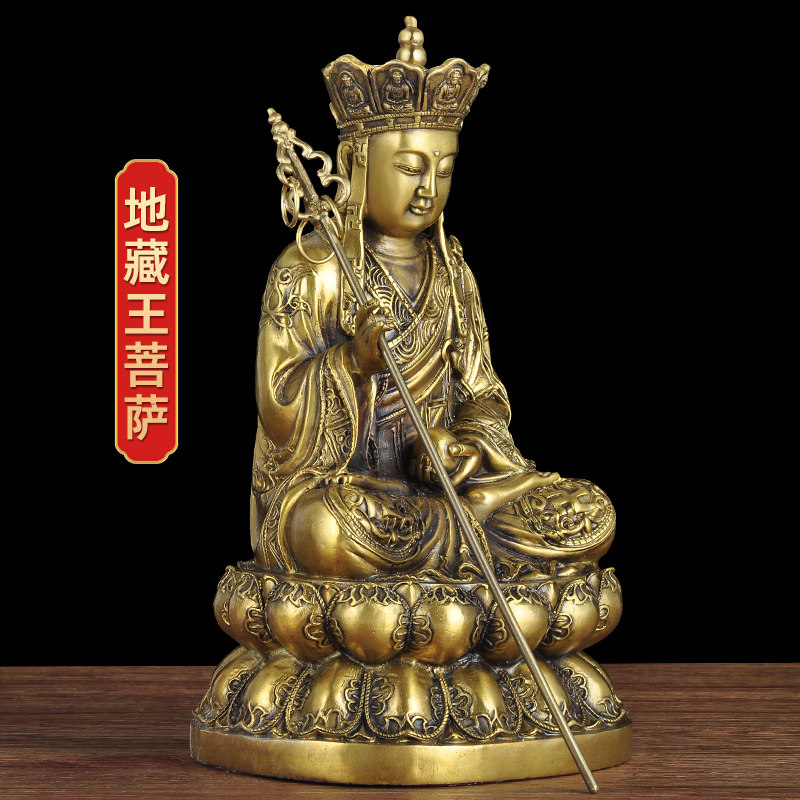 地藏王摆件铜地藏王菩萨佛像坐莲佛堂供奉菩萨像地藏王菩工艺品