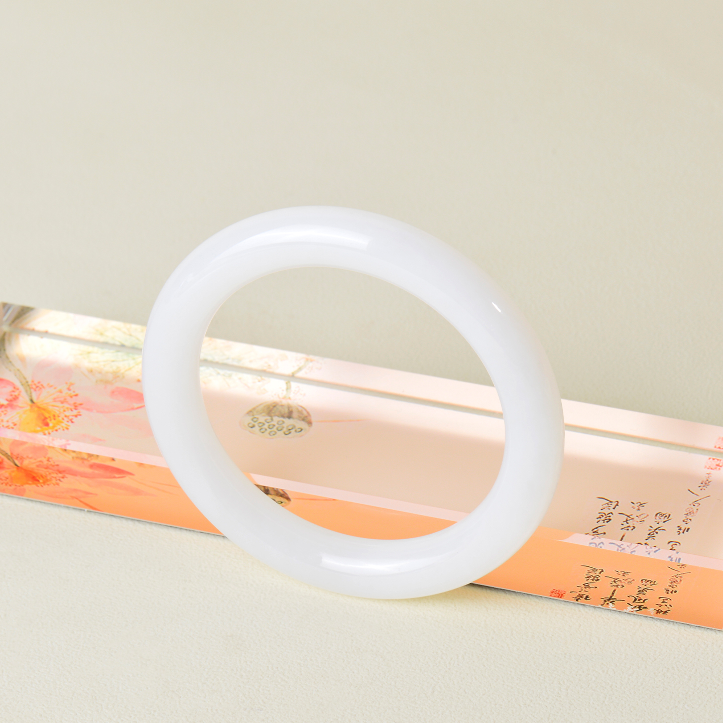 凤飞凰55.5mm和田玉羊脂白玉胖圆条手镯女款玉镯天然玉石镯子0137