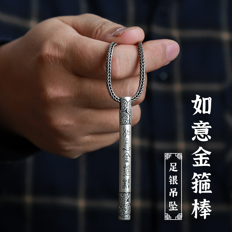 藏银大圣孙悟空金箍棒银吊坠男士挂件护身符转运项链潮男个性饰品