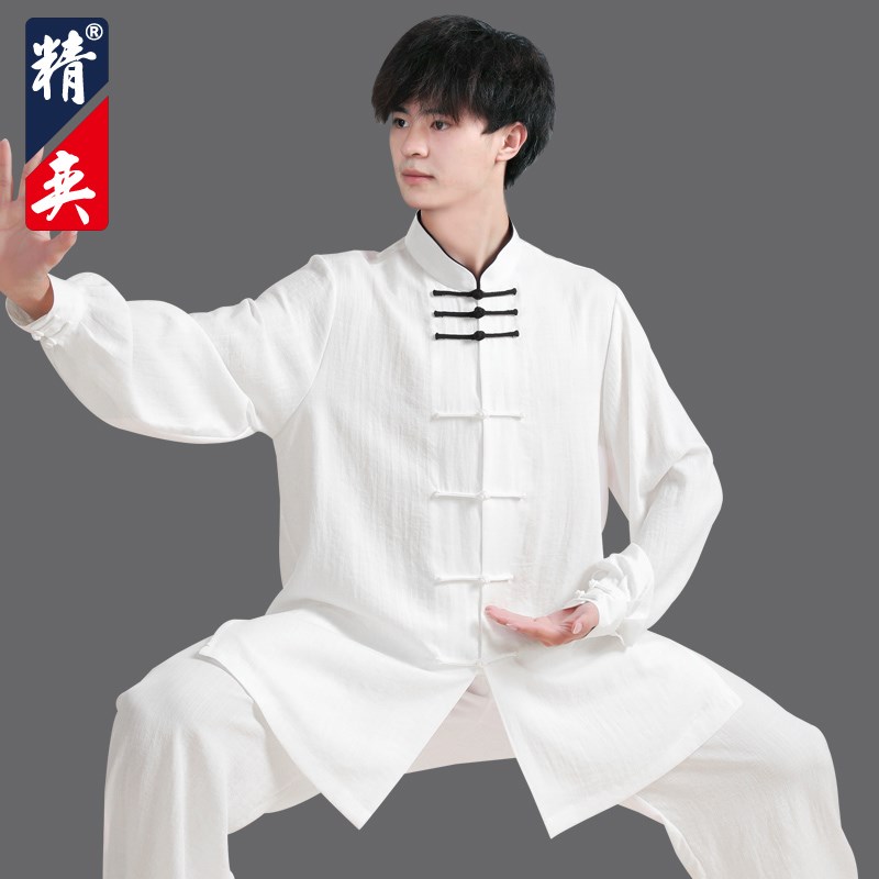 速发精极太极服新服洋气棉麻武术表演款太奕拳服装男练功服春秋套
