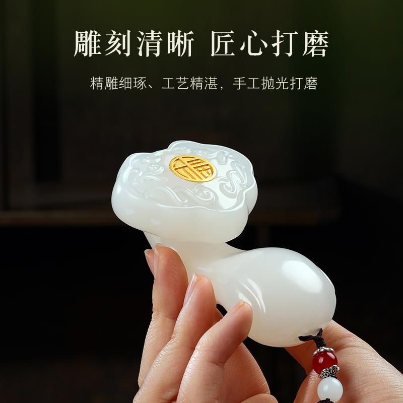 天然玉石如意手把件摆件随身文玩创意桌面装饰送男女友把玩礼物品