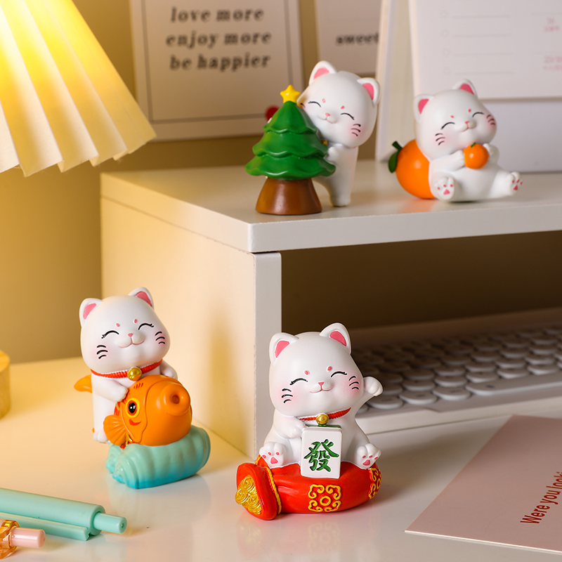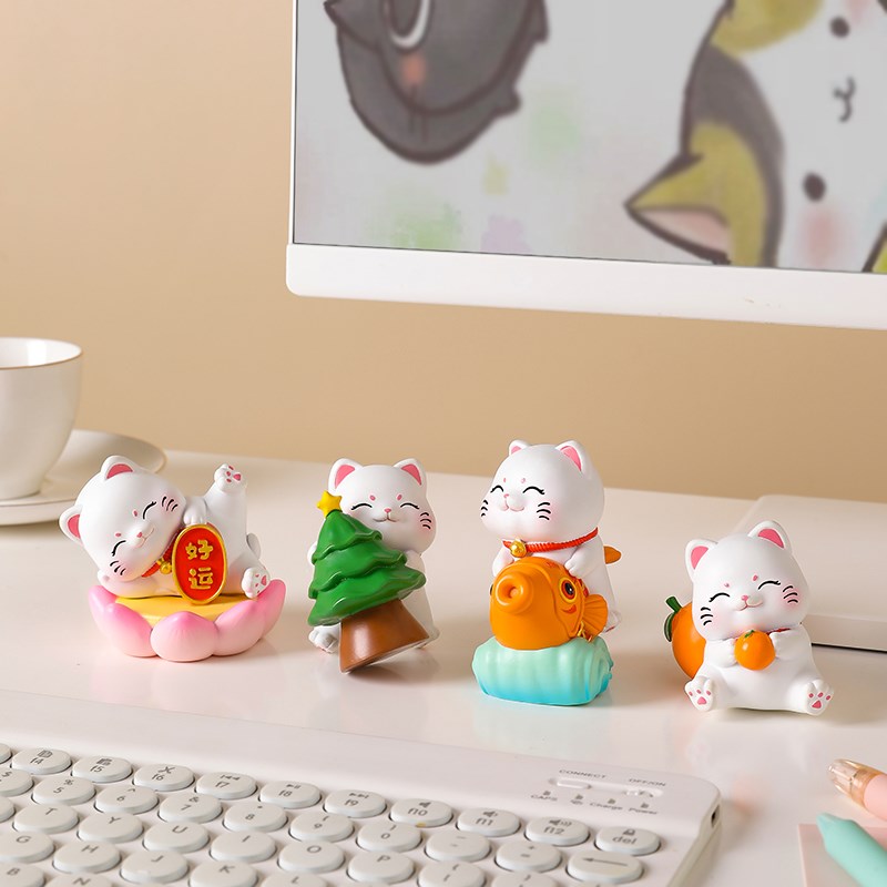 可爱招财猫桌面摆件办公室工位解压治愈装饰品送闺蜜女友小礼物