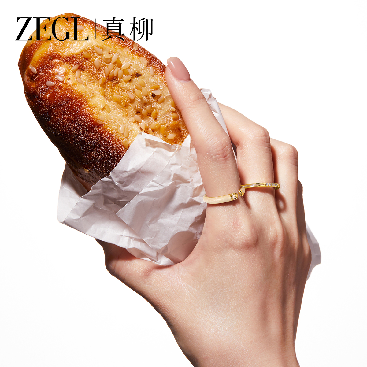 ZEGL真柳金色素圈戒指女小众设计轻奢时尚叠戴组合指环开口食指戒
