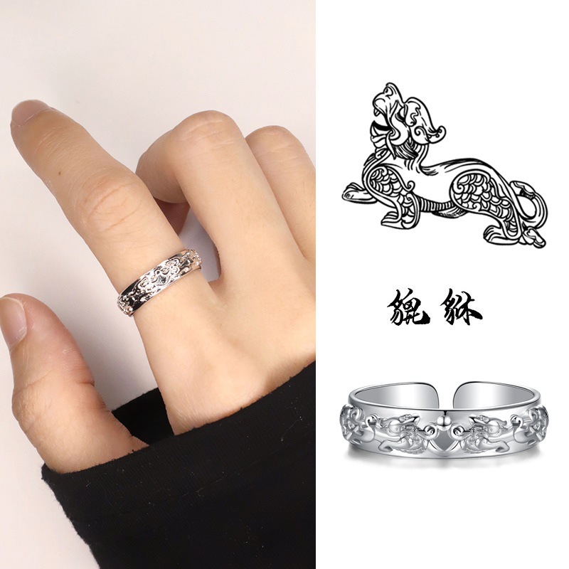 【新年转运】纯银貔貅戒指女ins潮个性小众开口可调食指指环复古