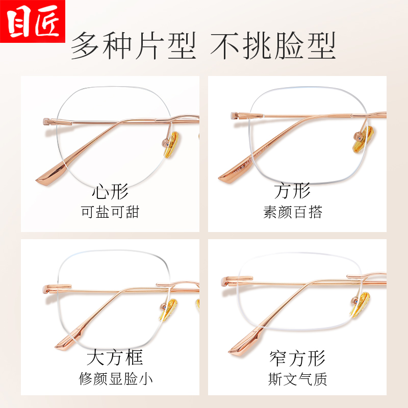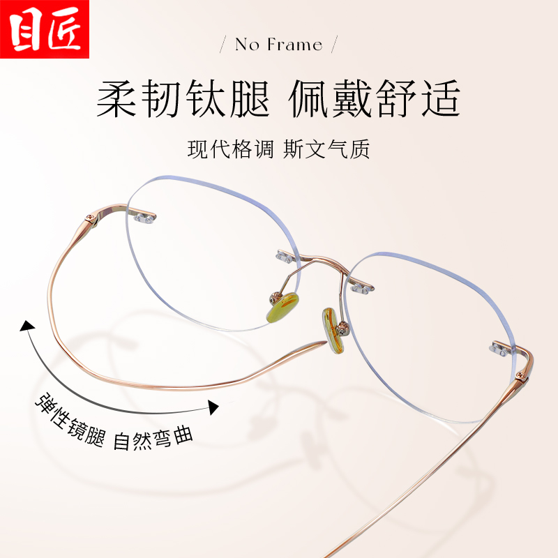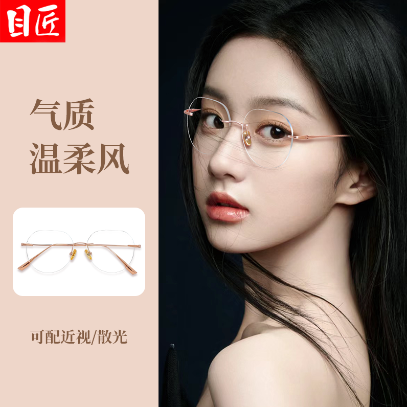 超轻纯钛金丝无框近视眼镜框女可配度数防蓝光时尚纯欲无边框镜架