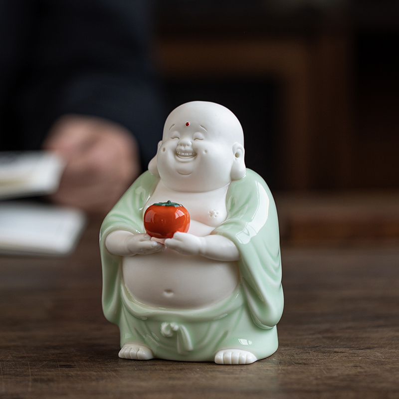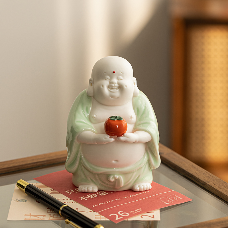 新中式弥勒佛招财摆件创意陶瓷大肚笑佛佛像家居博古架桌面装饰品
