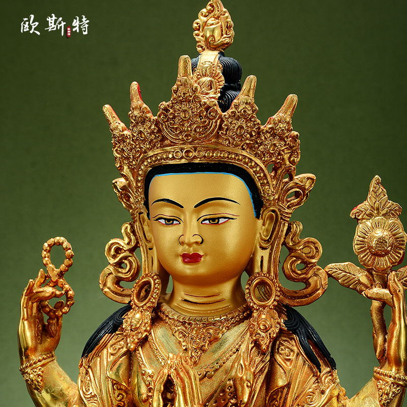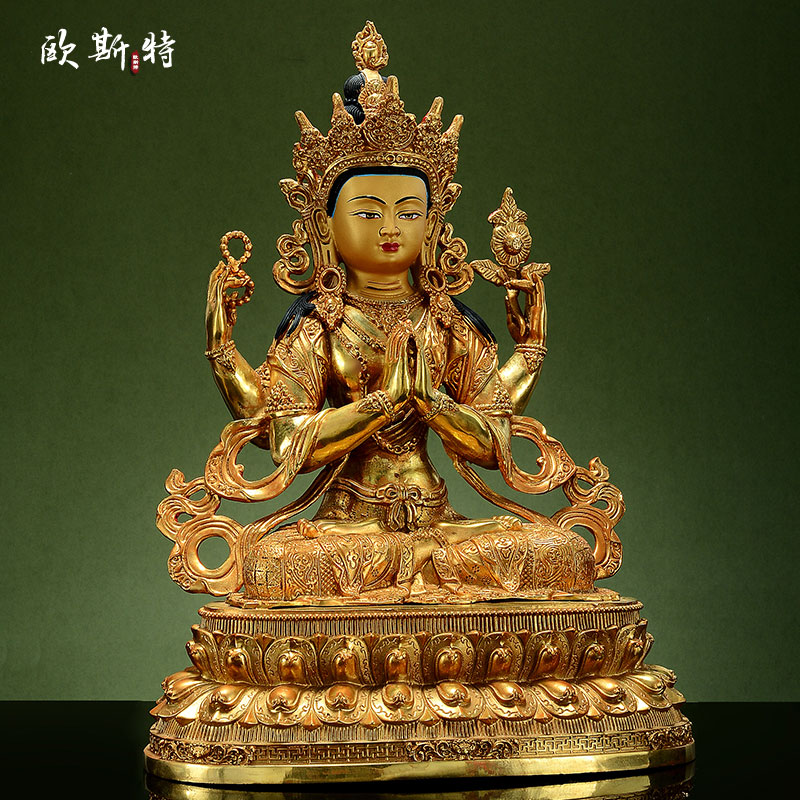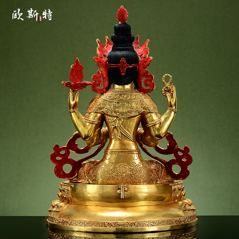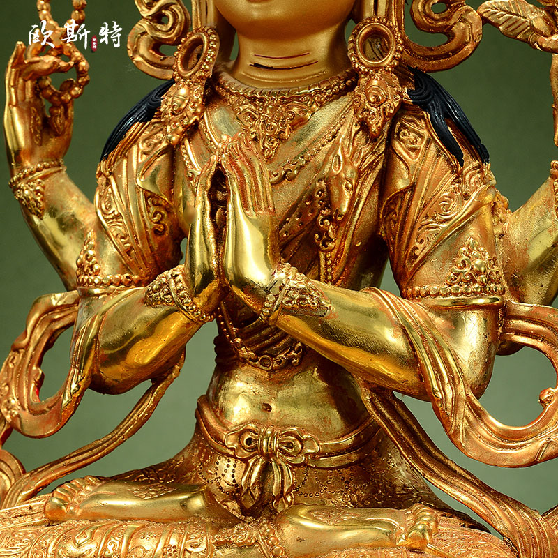 欧斯特全鎏金《四臂观音》室内家用精工铜《观音菩萨》铜像摆件