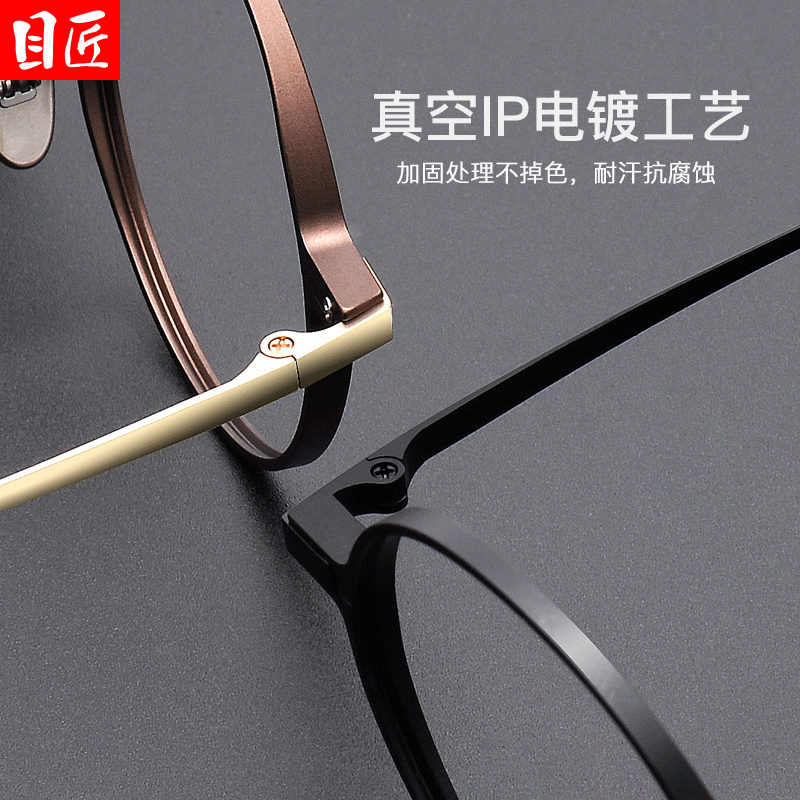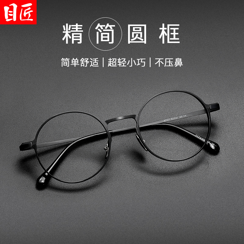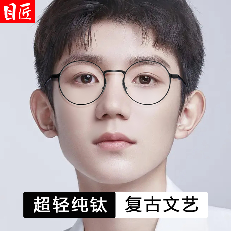 超轻纯钛复古小圆框近视眼镜框男款可配度数日系黑色圆形日式镜架