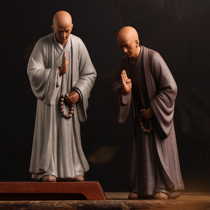 创意紫砂小和尚陶瓷家居饰品博y古架书房工艺品摆件禅意佛系小沙
