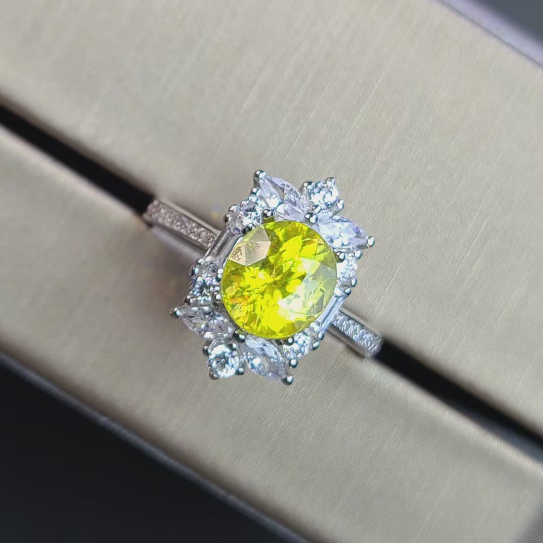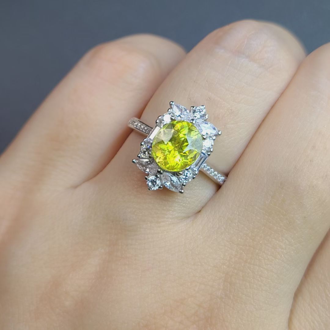 榍石戒指 天然的稀有宝石 特点 闪烁 重量2.08克拉 仿佛黄钻