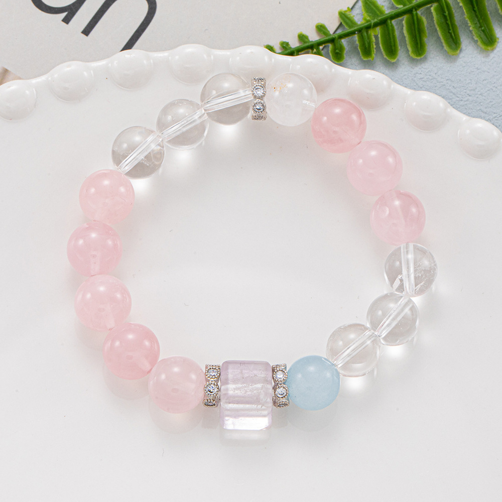 天然白水晶手链女原创设计手串海蓝宝粉晶多宝水晶手串时尚高级