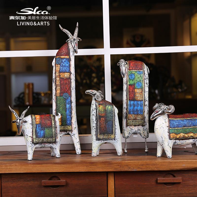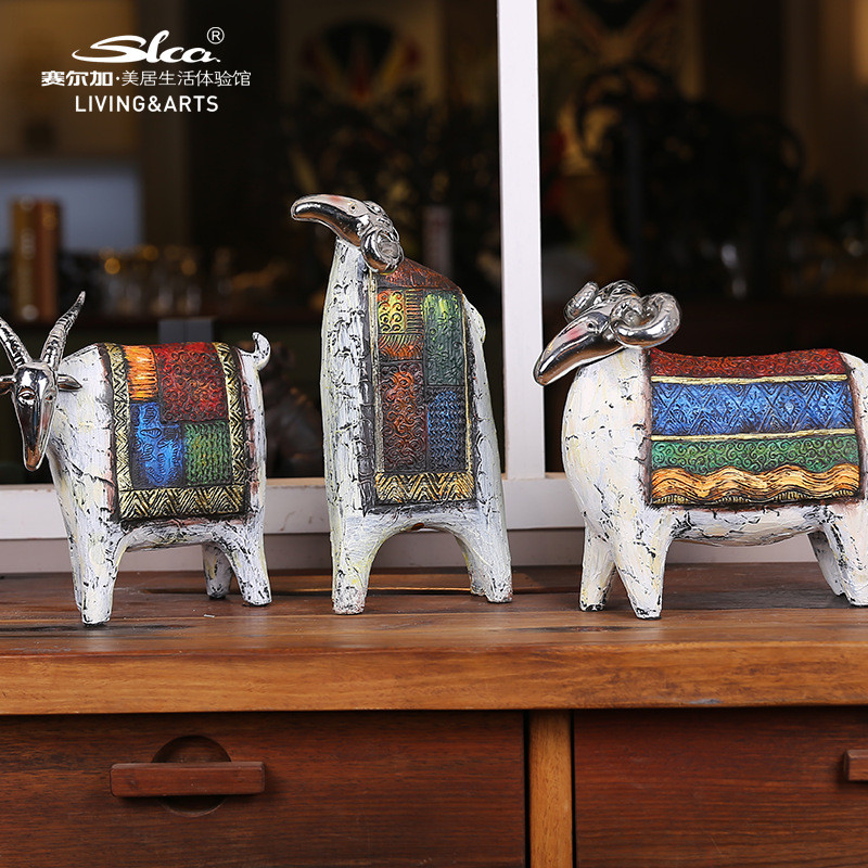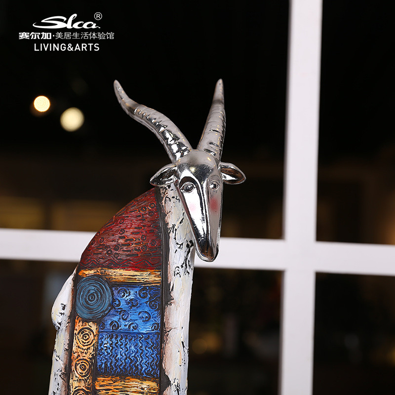 跨境代发油画羊动物摆件欧式酒店民宿创意饰品客厅桌面树脂工艺品