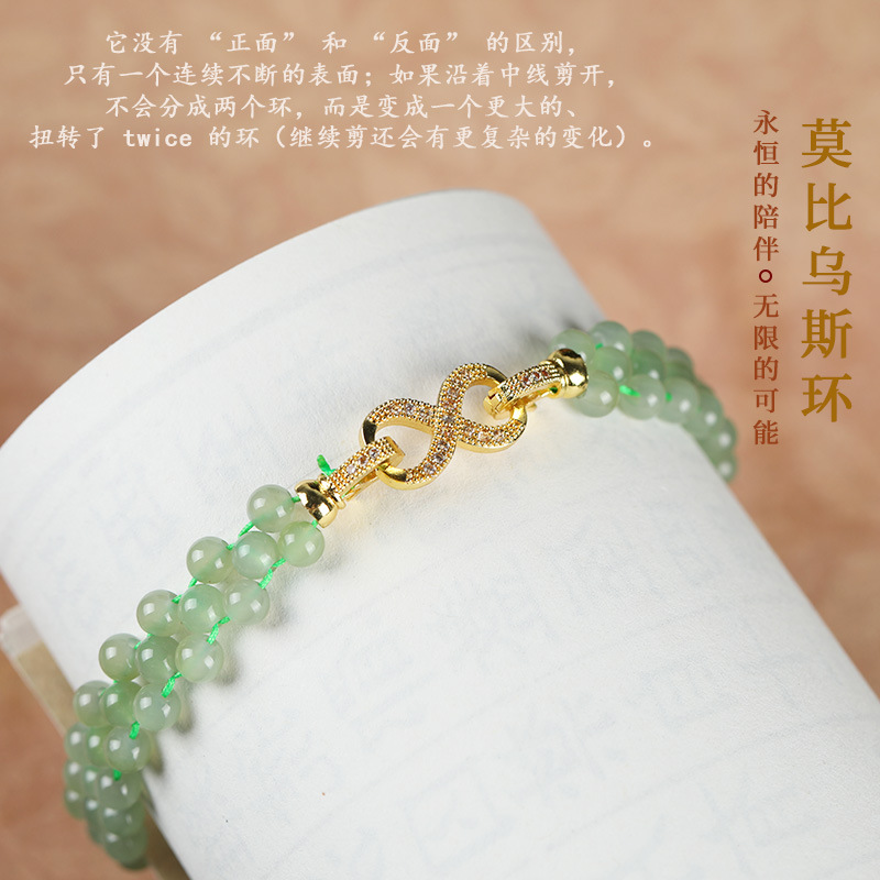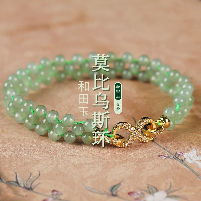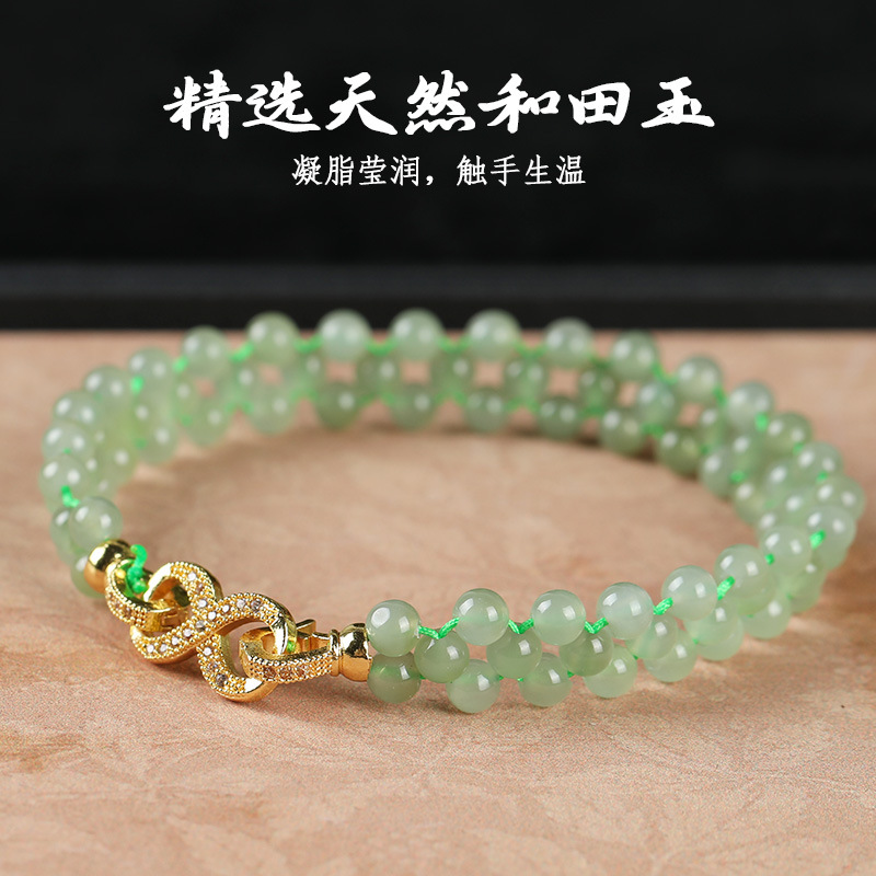 唐今玉和田玉晴水手链珠径4MM三排手串莫比乌斯环手串和田玉手链