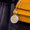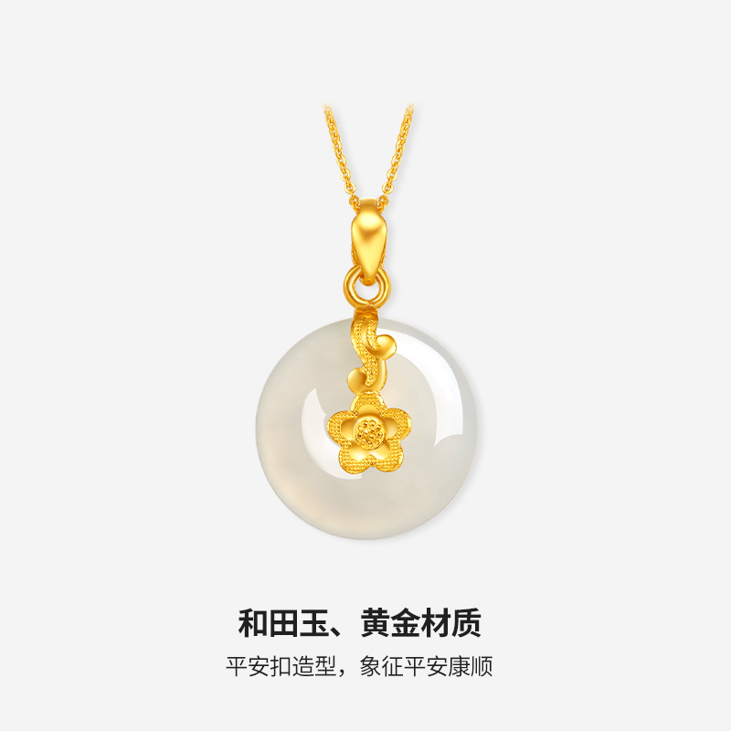 周六福和田玉平安扣吊坠黄金妈妈金镶玉足金玉石挂件节日礼物