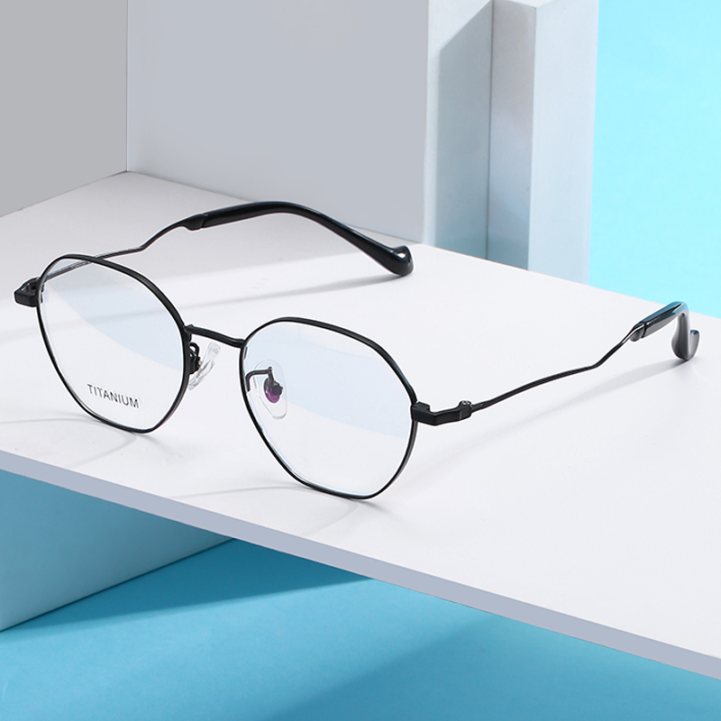纯钛小脸散光防雾高度近视眼镜框多边形超轻薄配成品曲线镜腿女款