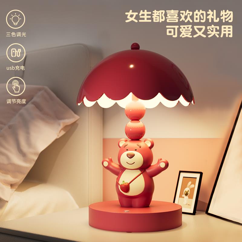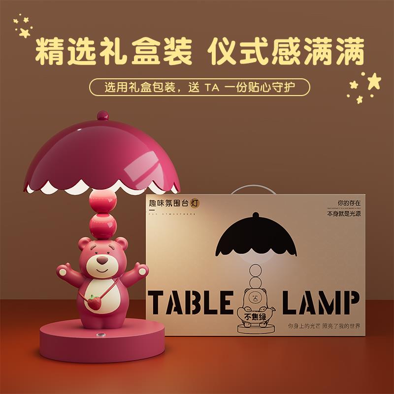 可爱草莓熊台灯摆件小夜灯床头灯送闺蜜新娘结婚订婚生日礼物女生
