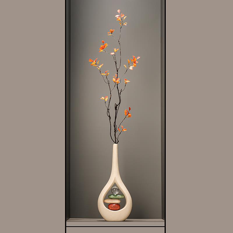 石来运转陶瓷花瓶迎客松入门玄关壁龛细高摆件高级感客厅装饰品