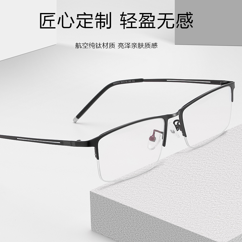 蔡司视特耐配半框近视眼镜男商务钛合金超轻防蓝光可配有度数镜片