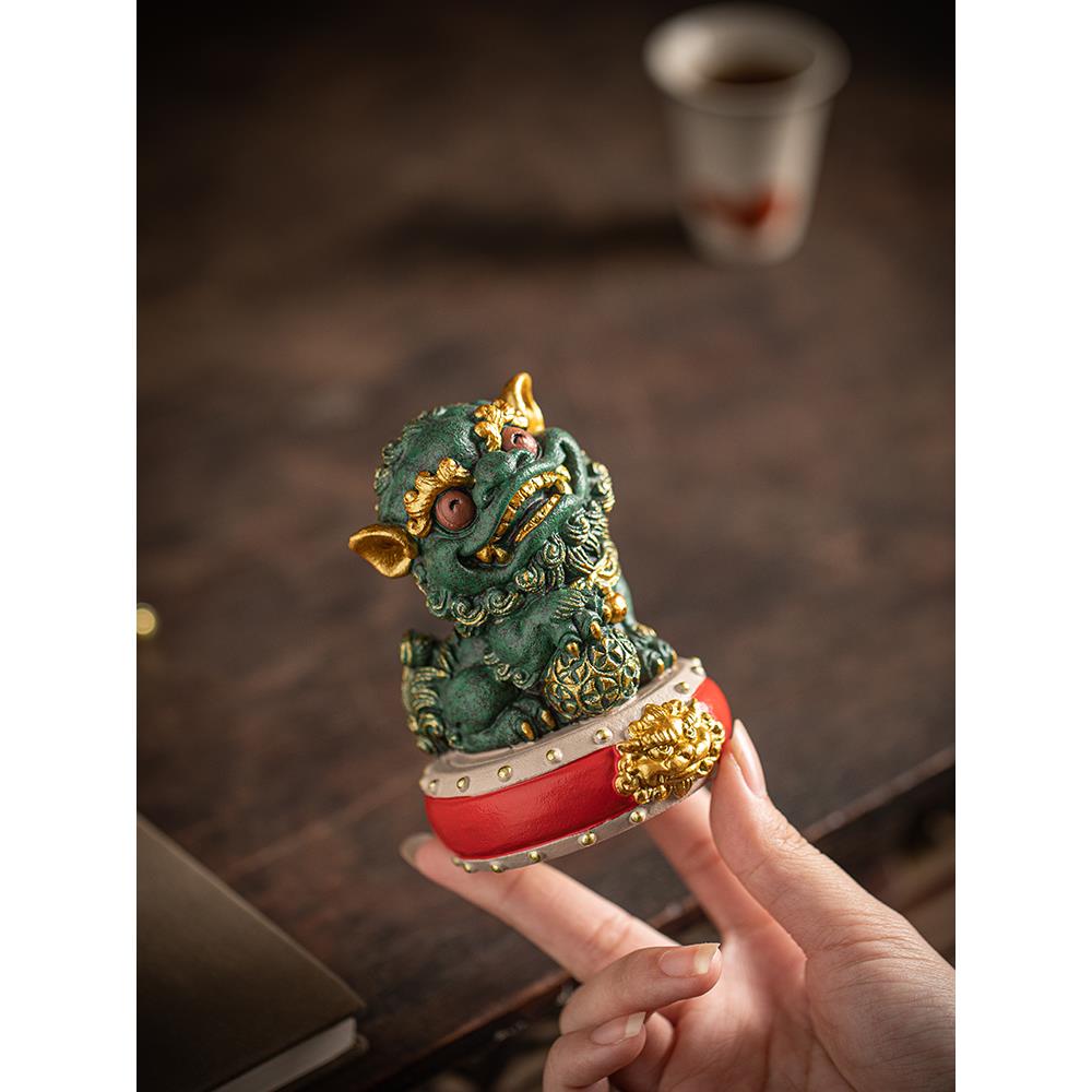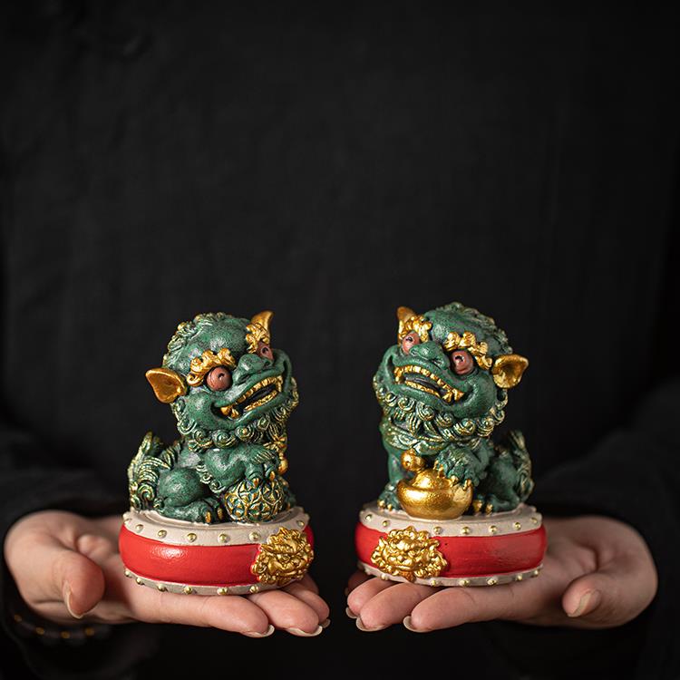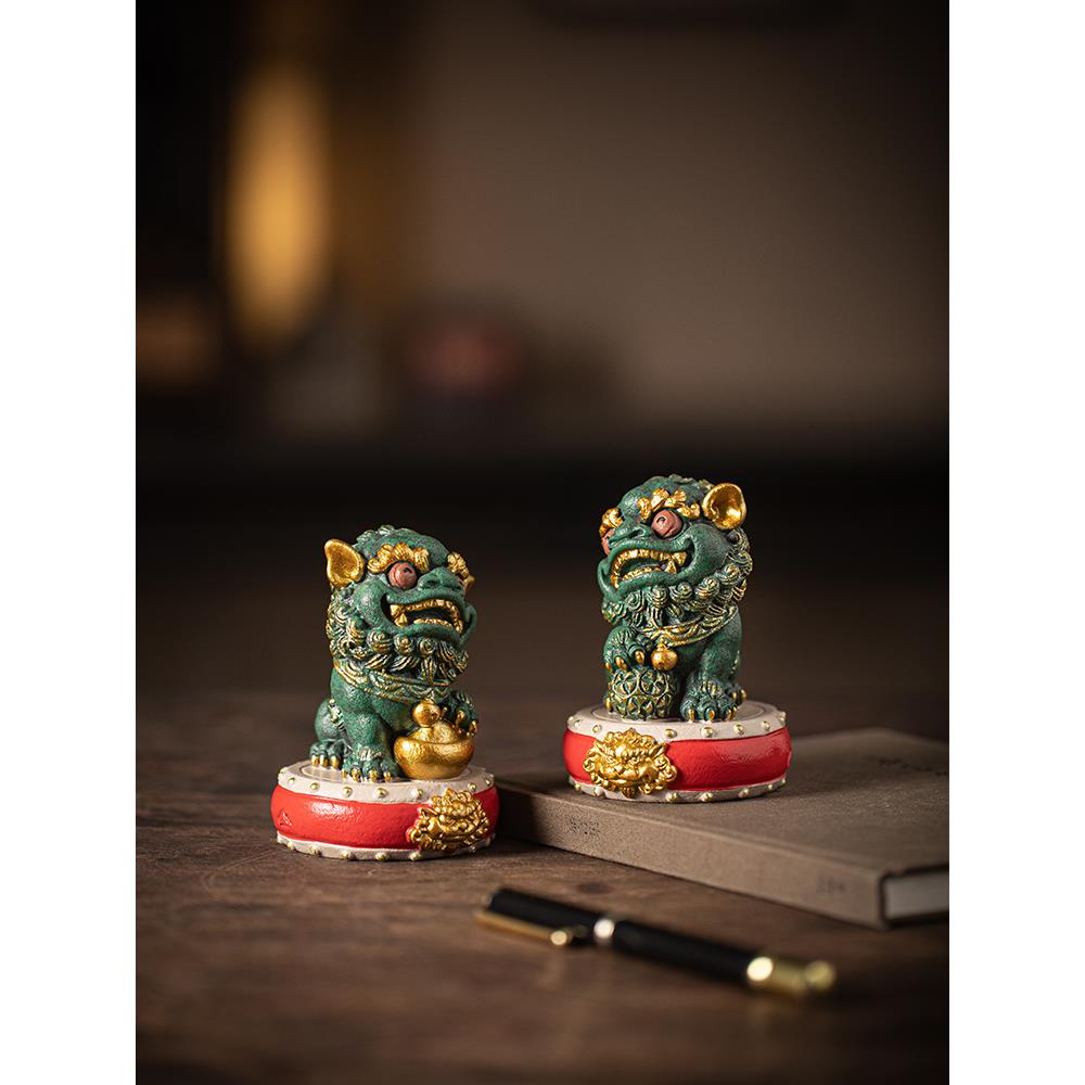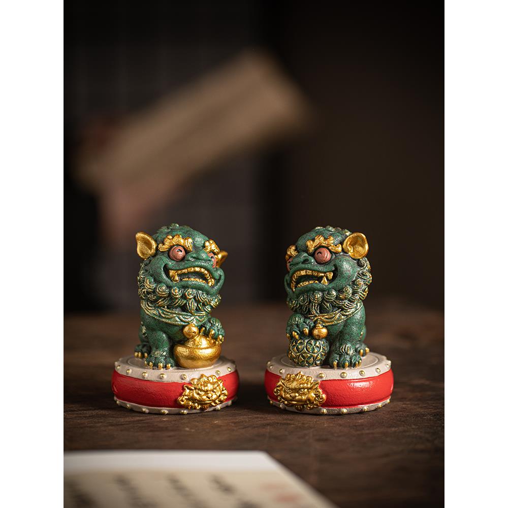 中国风国风文化创意鼓狮对高端人物桌面饰品礼盒客厅办公装饰品