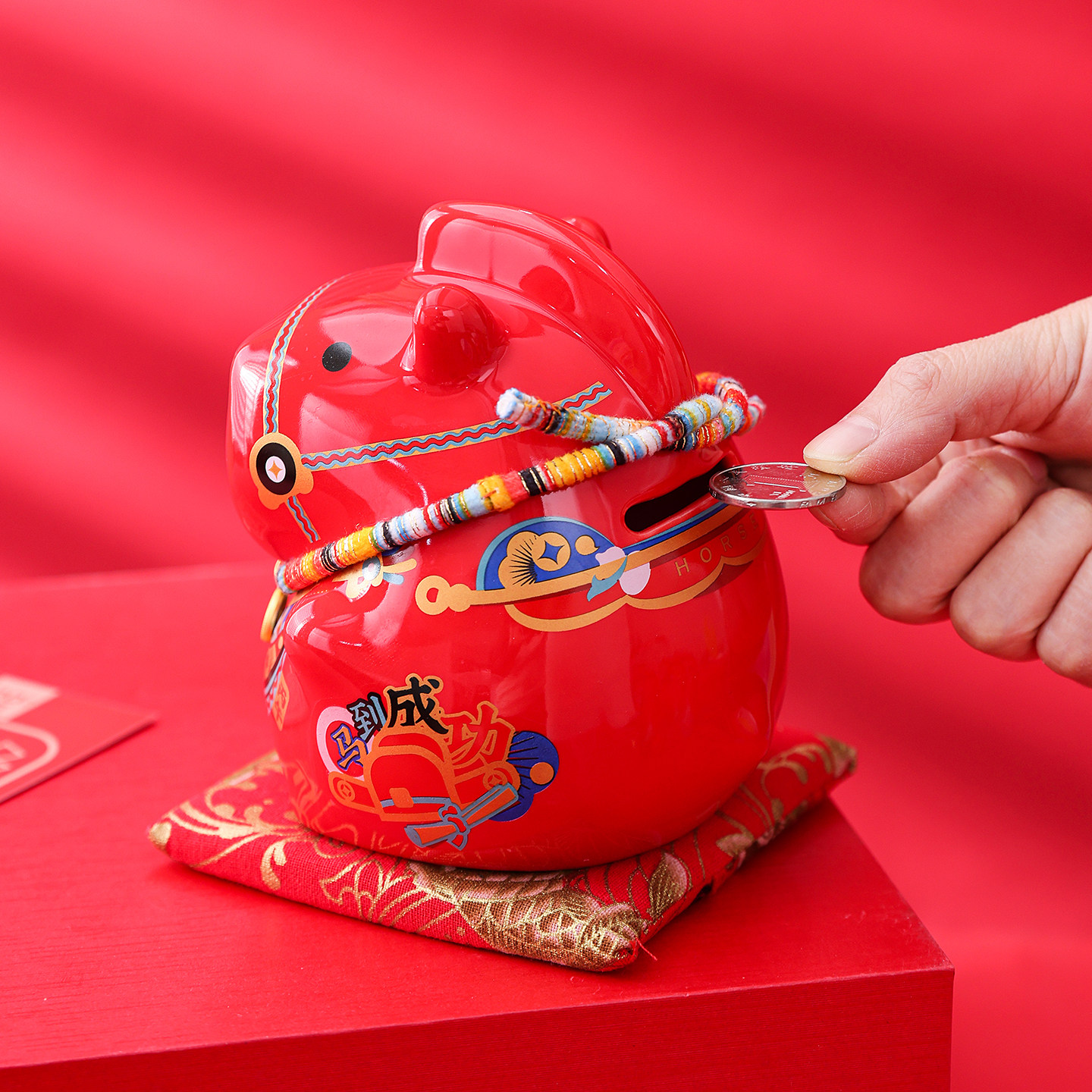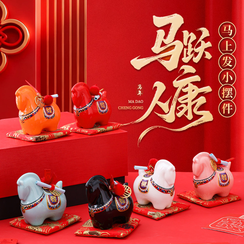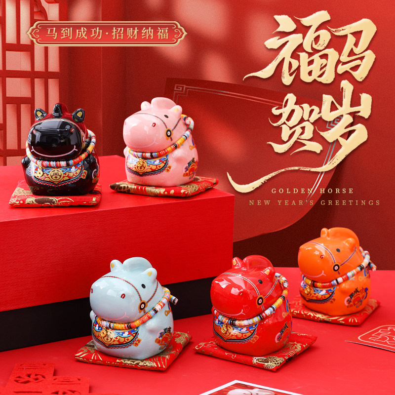 2026马年红色陶瓷存钱罐茶杯套装商务定制文创新年送礼物装饰摆件