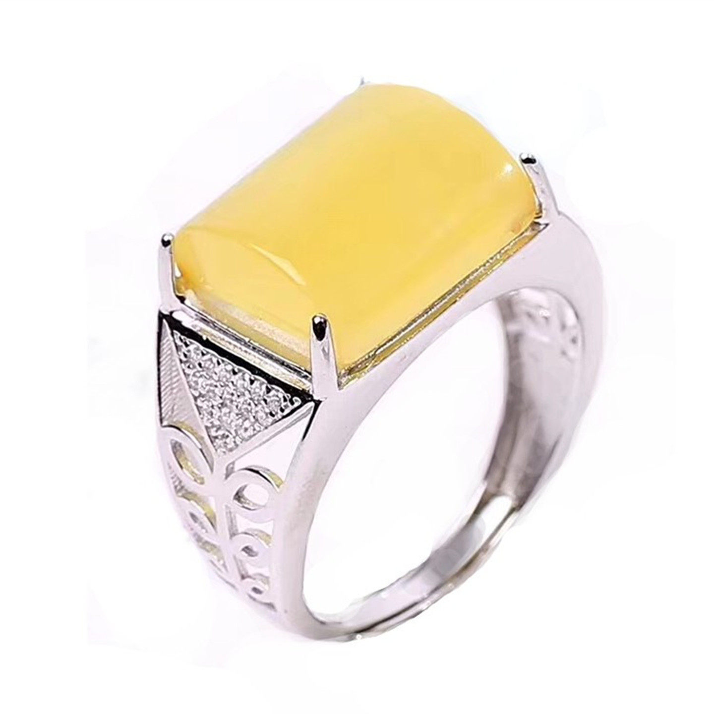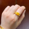 捡漏天然老矿蜜蜡戒指鸡油黄纯银镶嵌戒指女款新矿满蜜金绞蜜蜜蜡