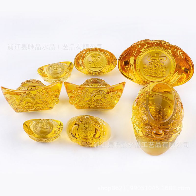龙纹元宝批发黄水晶工艺品琉璃挂件办公室客厅家居装饰品摆件