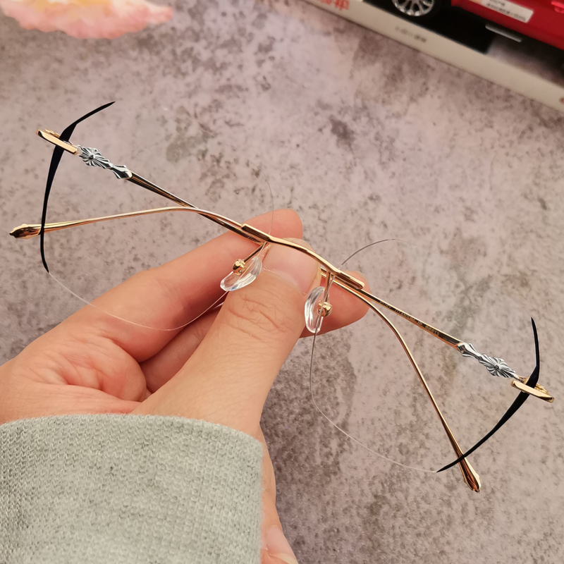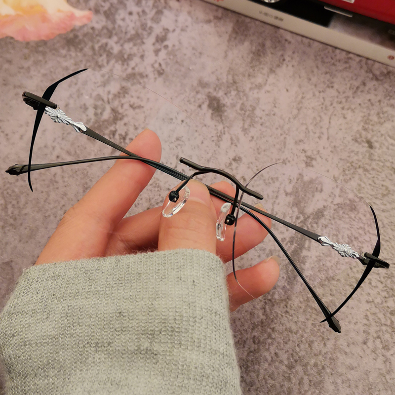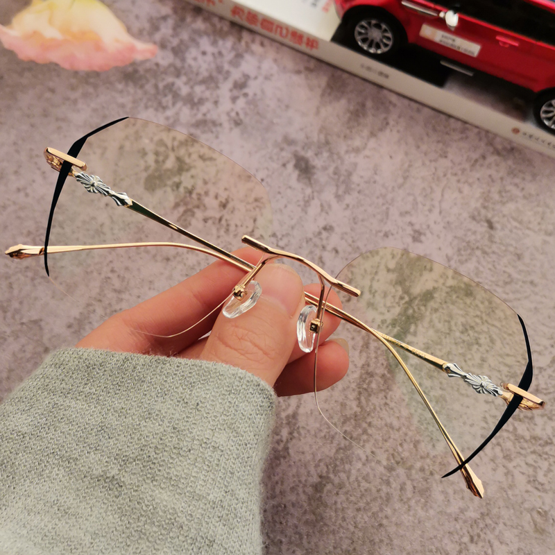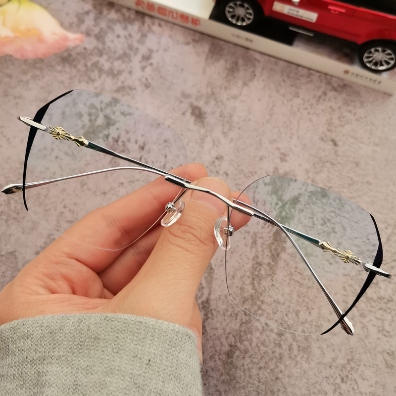 纯钛眼镜女近视男新款可配有度数超轻无边框多边形变色防蓝光潮架