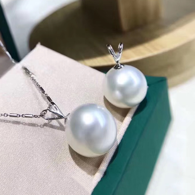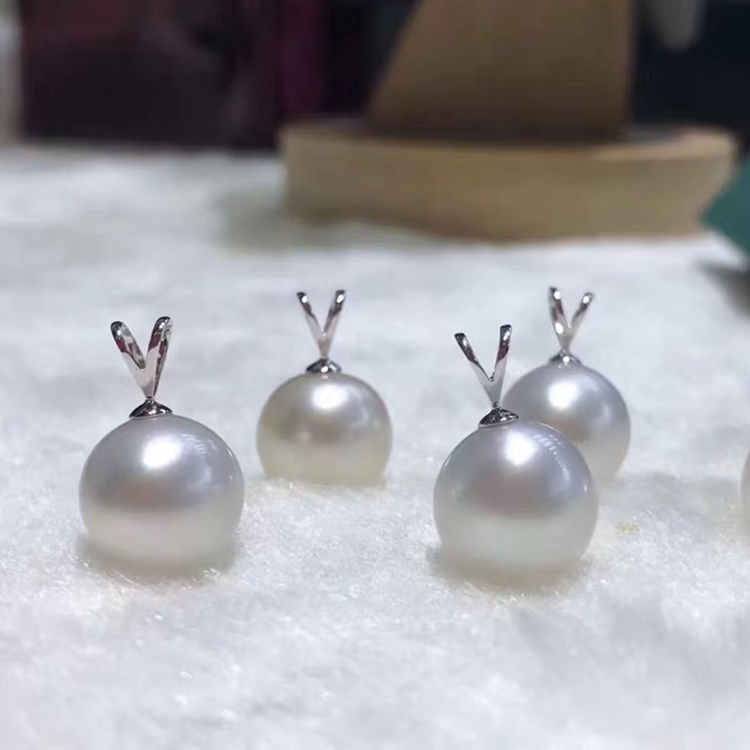 DIY珍珠配件 S925纯银玉石吊坠空托 兔子耳朵项坠托 配8-12mm