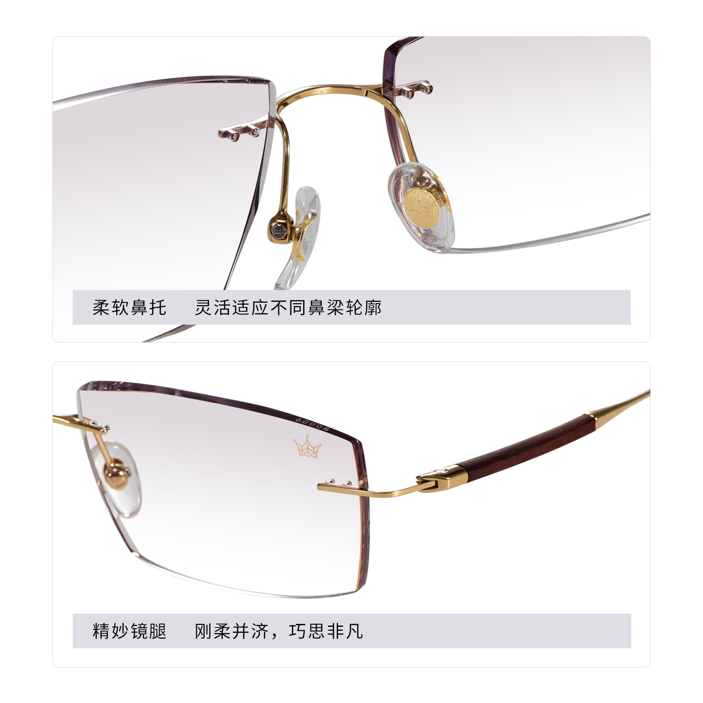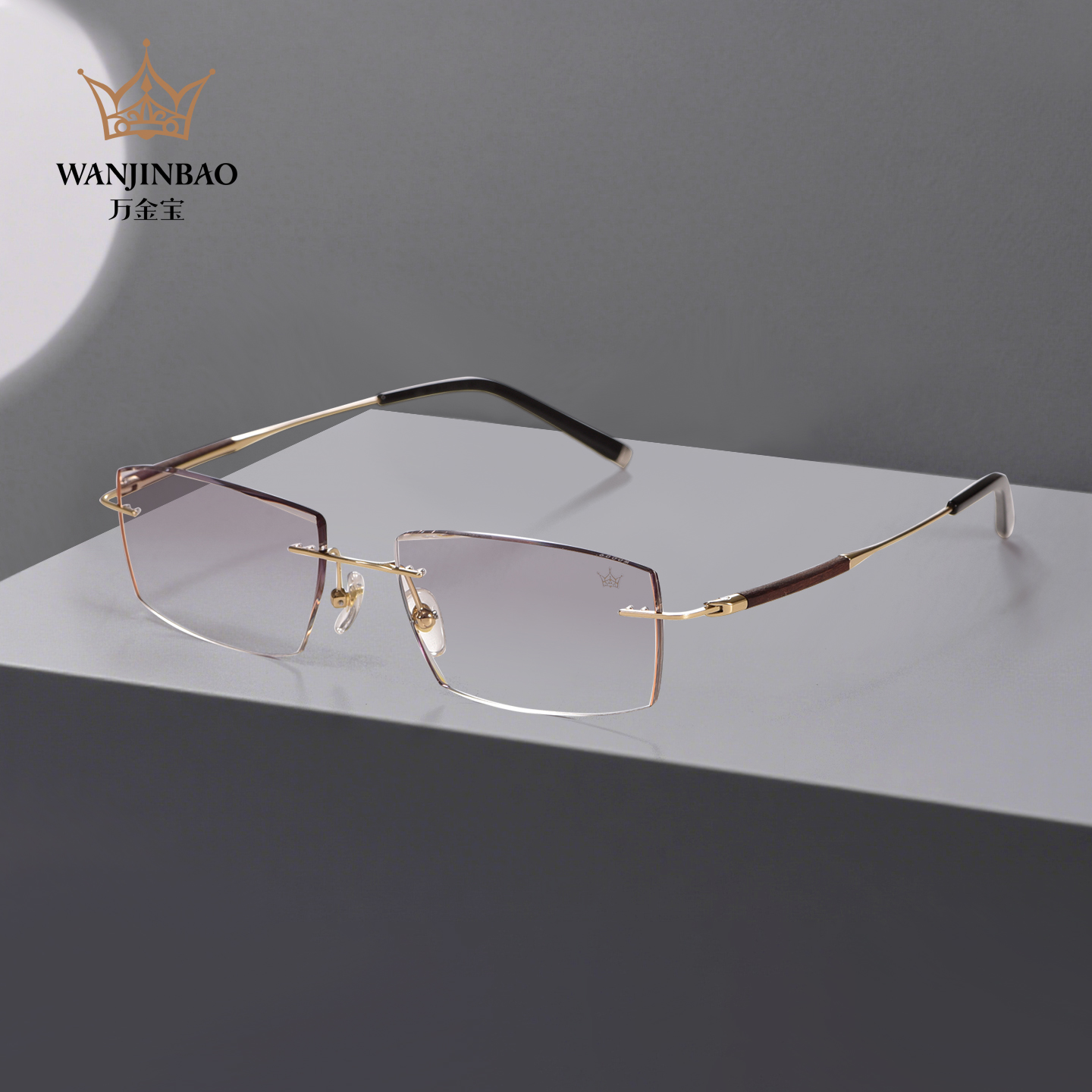 万金宝钻石切边无框檀木包金近视眼镜男士商务高端超轻钛架W0009