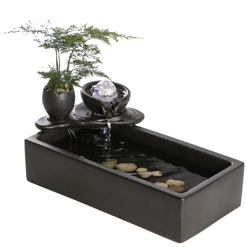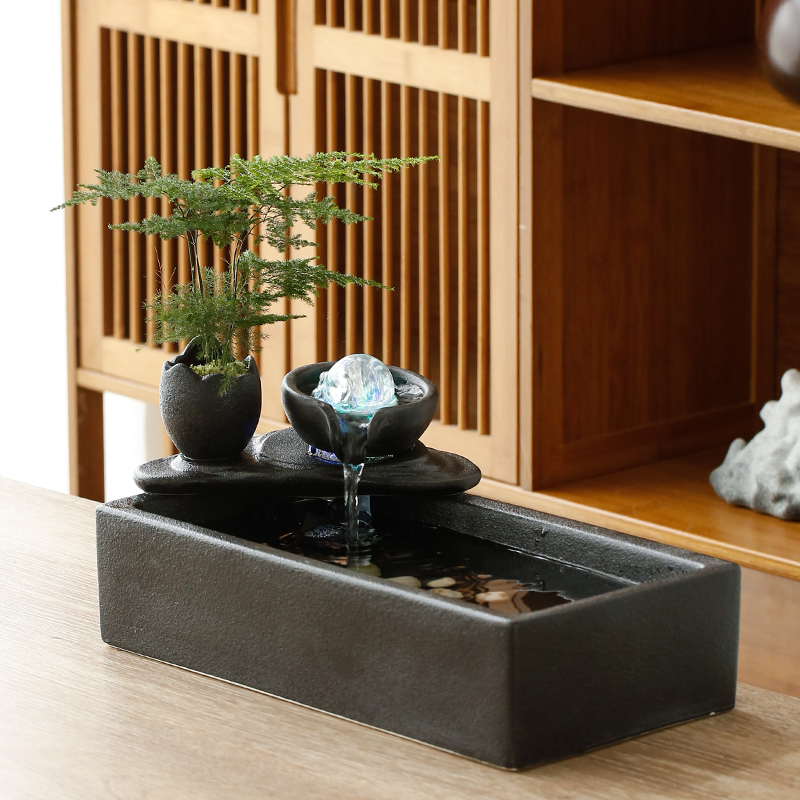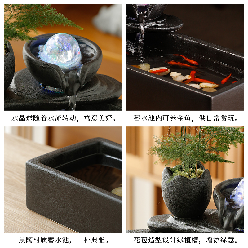现代流水招财水晶球陶瓷摆件创意小型客厅软装办公室桌面礼品