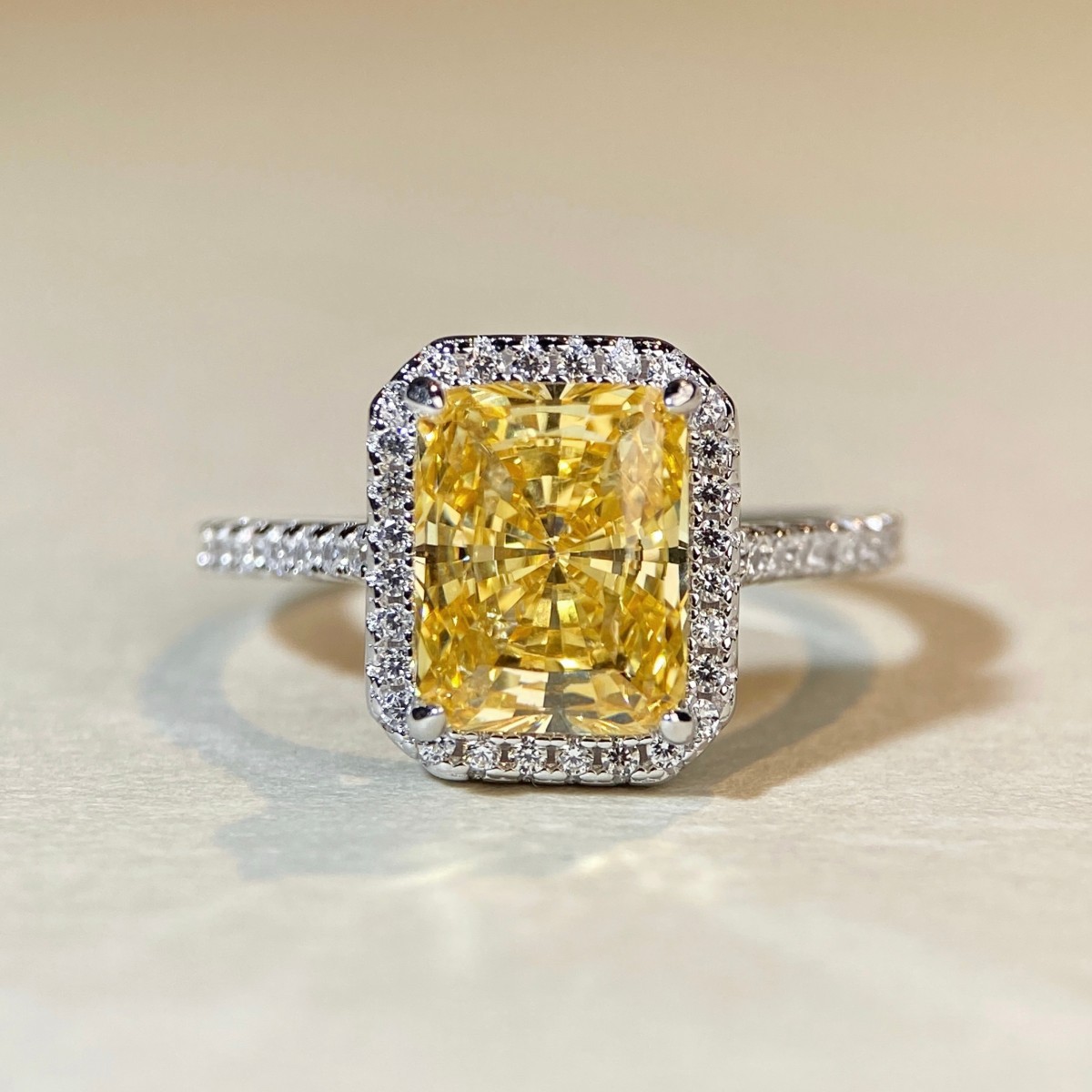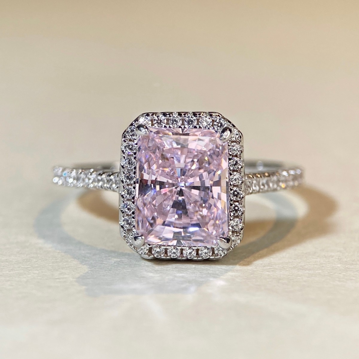 设计师s925纯银冰花切戒指女7x9尺寸雷迪恩切高碳钻锆石戒指指