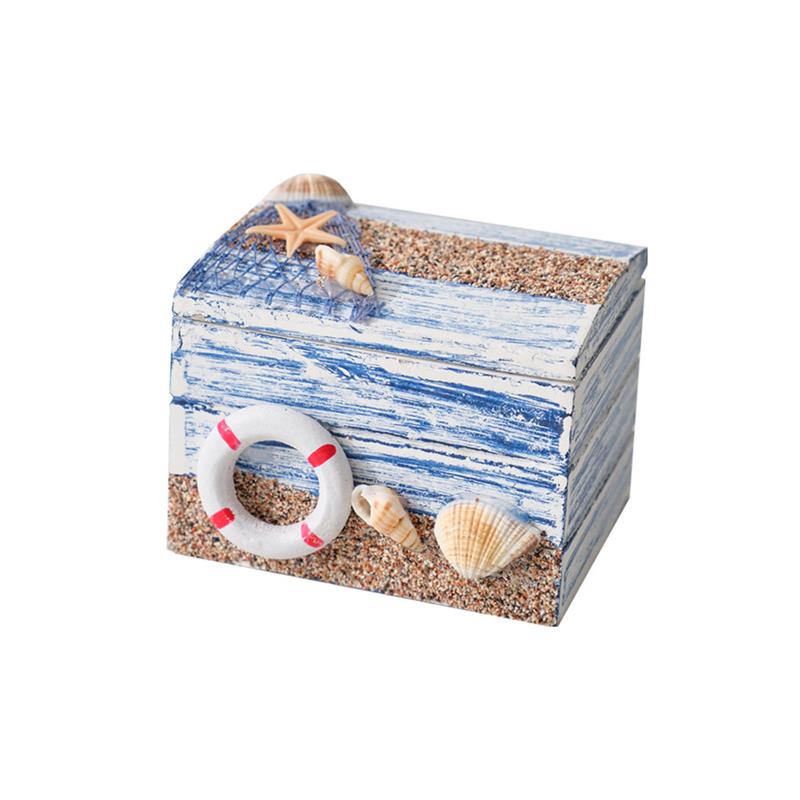 新品海洋风海底小木箱装饰摆件地中海风格沙滩小盒子创意摆台道具