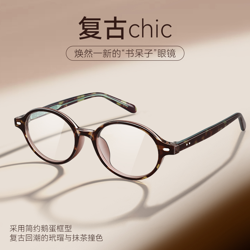 书呆子玳瑁眼镜女近视可配高度数椭圆小框蔡司防蓝光眼睛镜框镜架