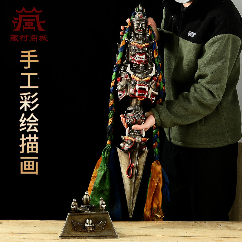 尼泊尔手工金刚橛室内客厅秽迹金刚杵牛头五股杵桌面铁摆件