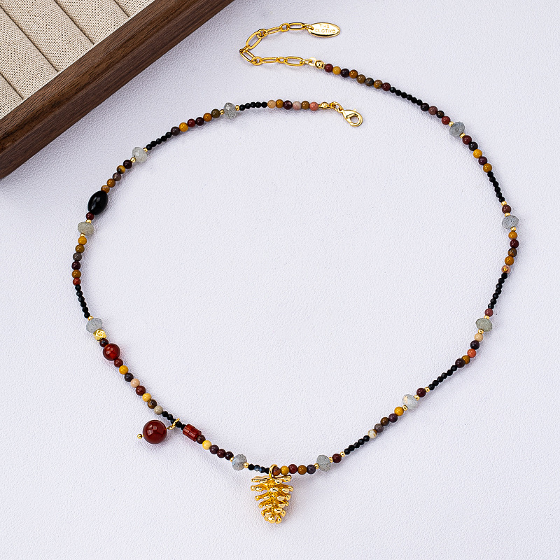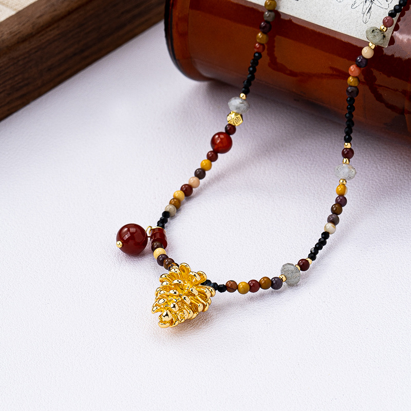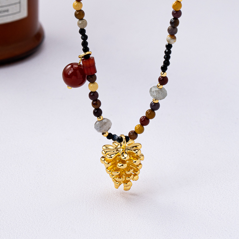 日本品质新款红运松果吊坠天然石串珠项链女士百搭气质锁骨链小众