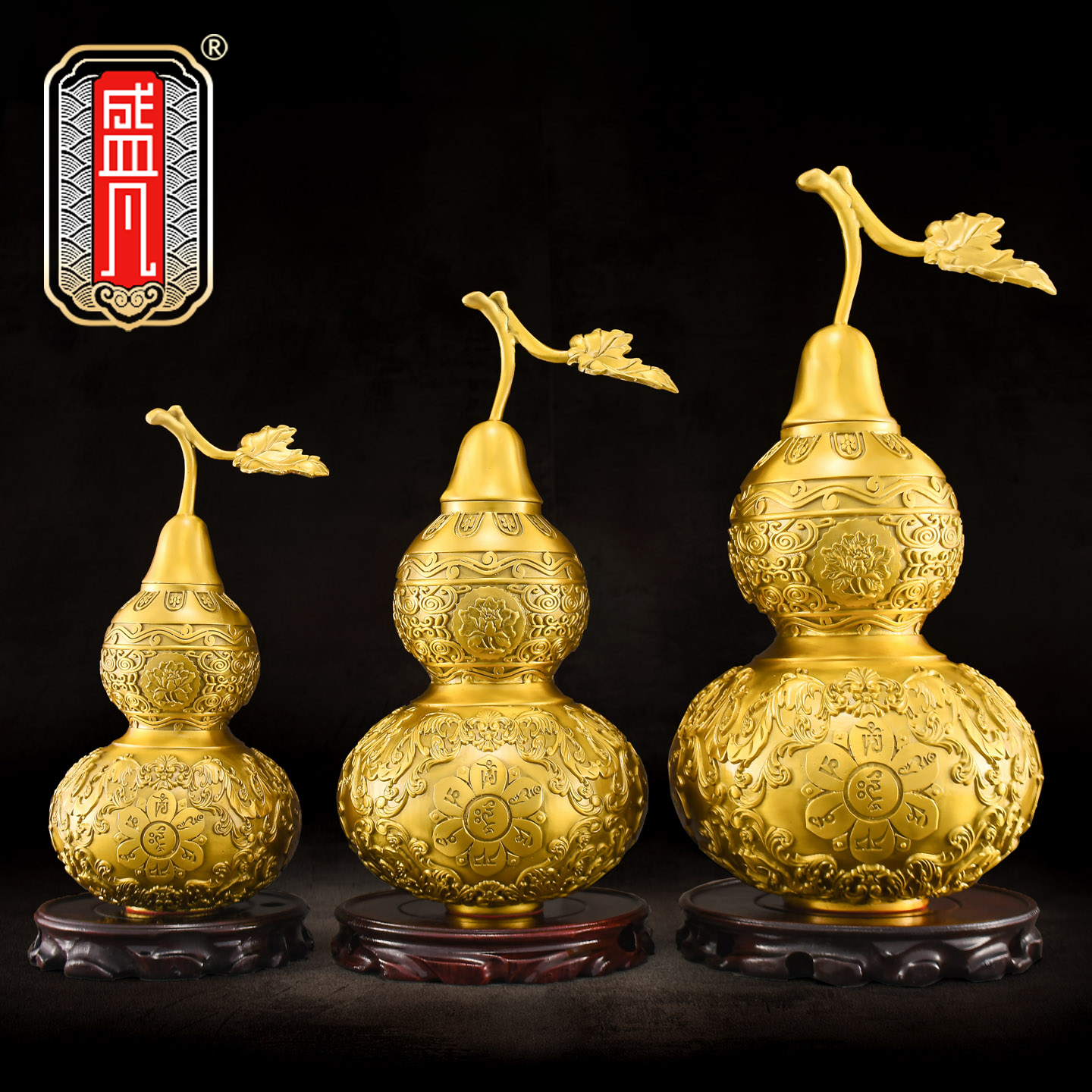 铜葫芦摆件黄铜开口盖空心葫芦大号镇宅客厅招财办公室桌面工艺品