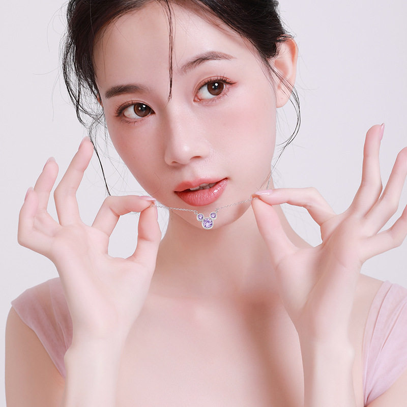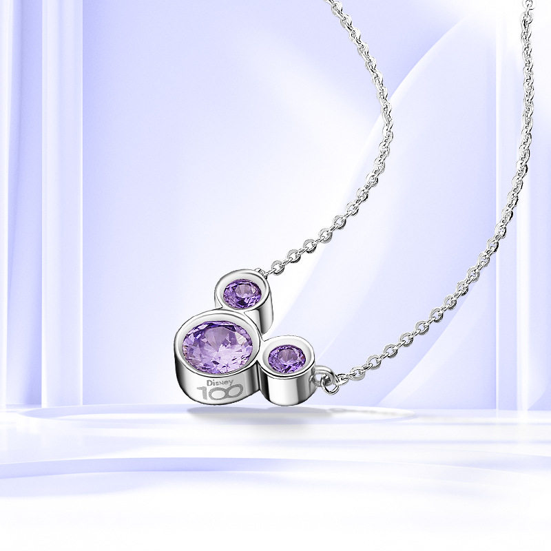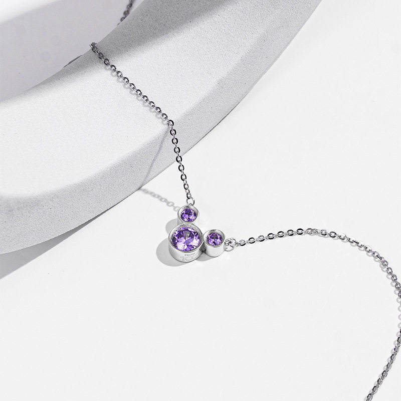 Disney/迪士尼经典米奇镶嵌奇遇紫色女士银饰项链礼物SMK1279