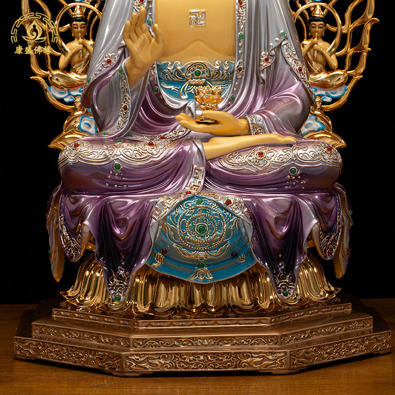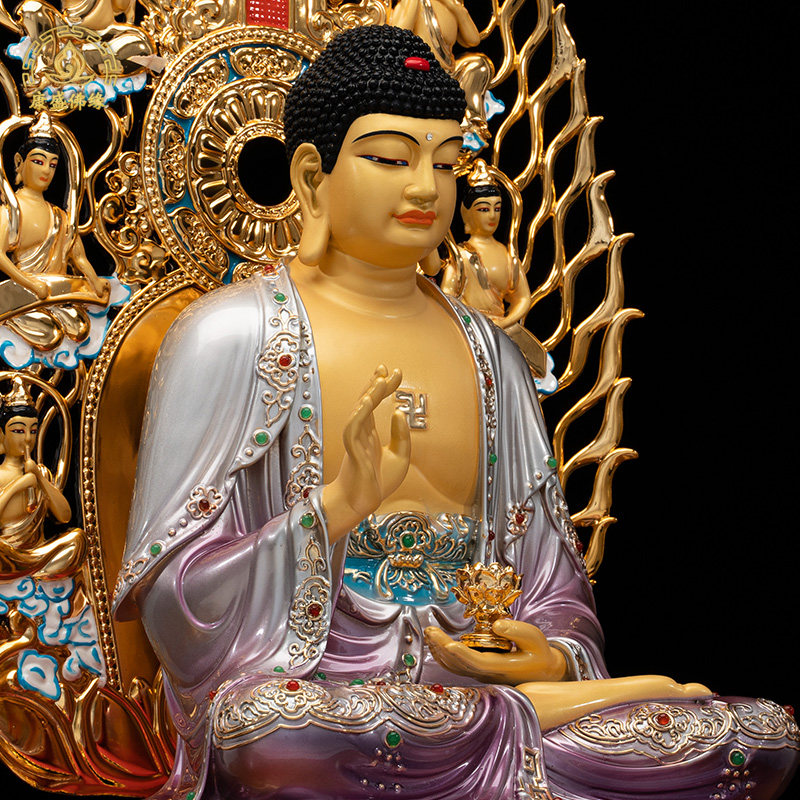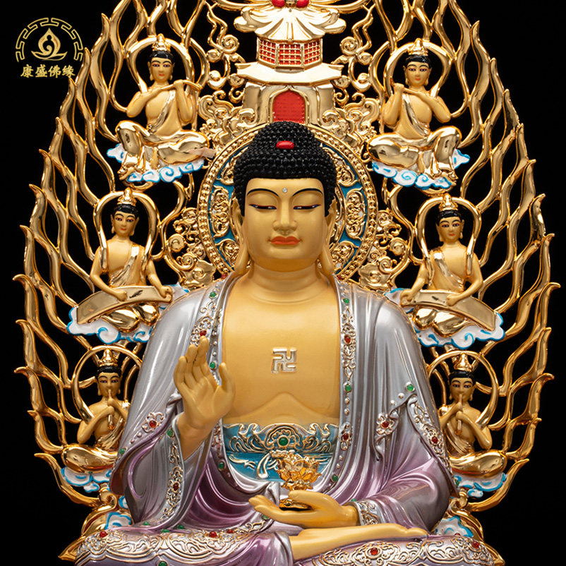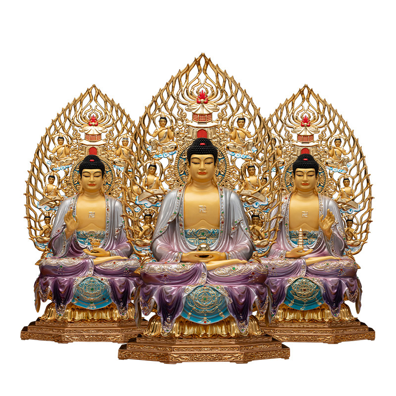 三宝佛纯铜鎏金三世佛释迦摩尼佛药师佛阿弥陀佛铜像桌面寺庙摆件