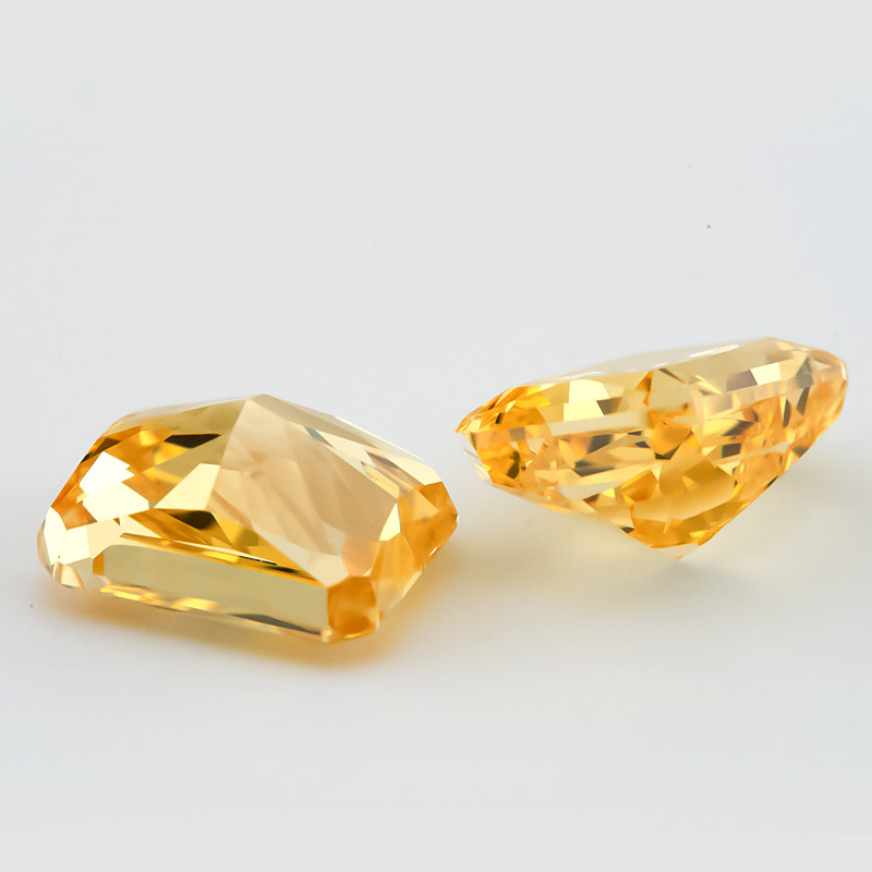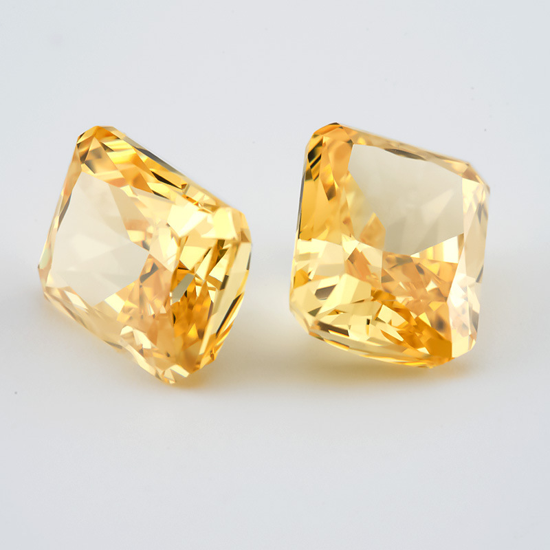 长方倒角冰花切深金黄锆石 人造宝石CZ高碳钻裸石 补钻首饰镶嵌用