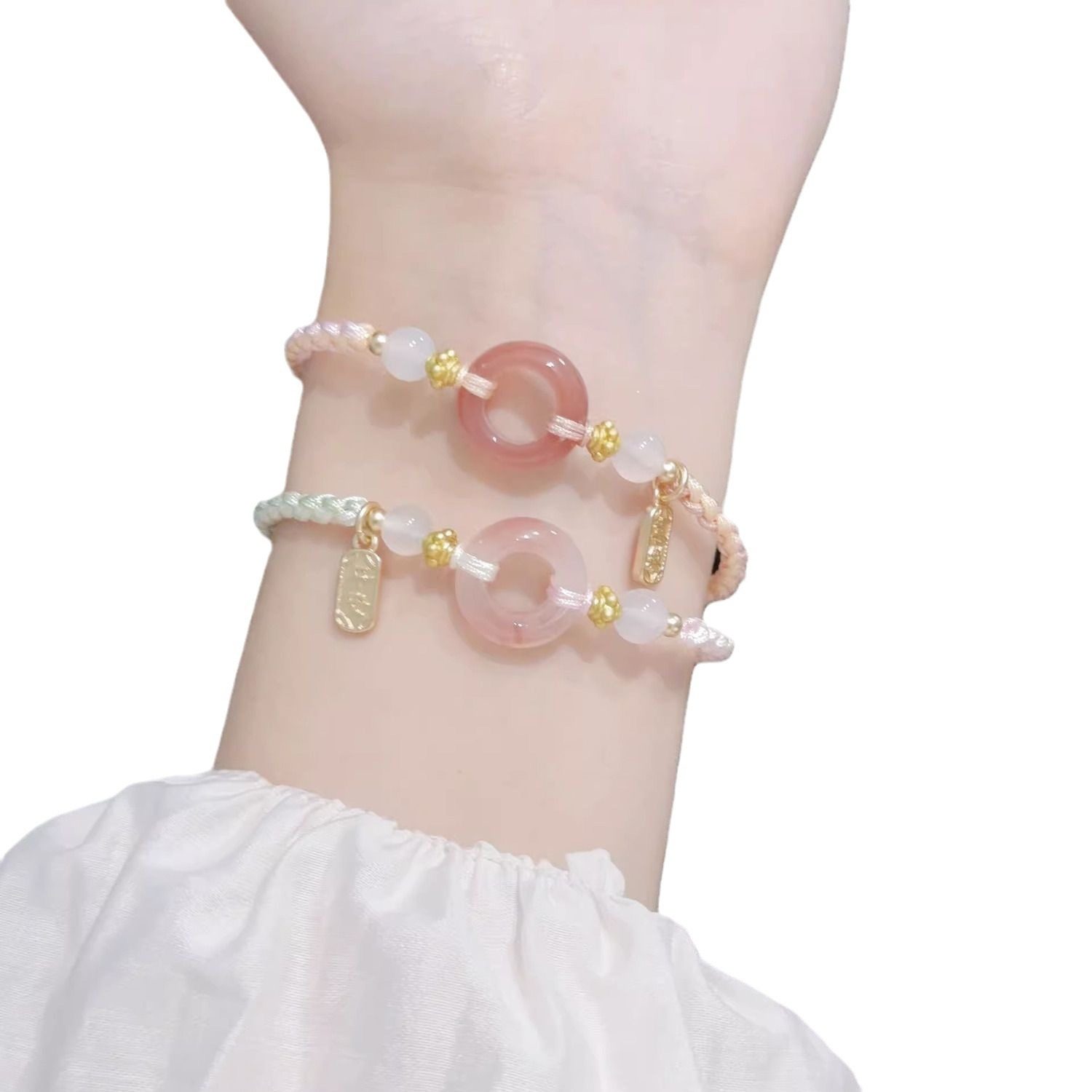 新中式民族国风手绳粉色桃之夭夭平安扣手链闺蜜二人编织女生
