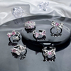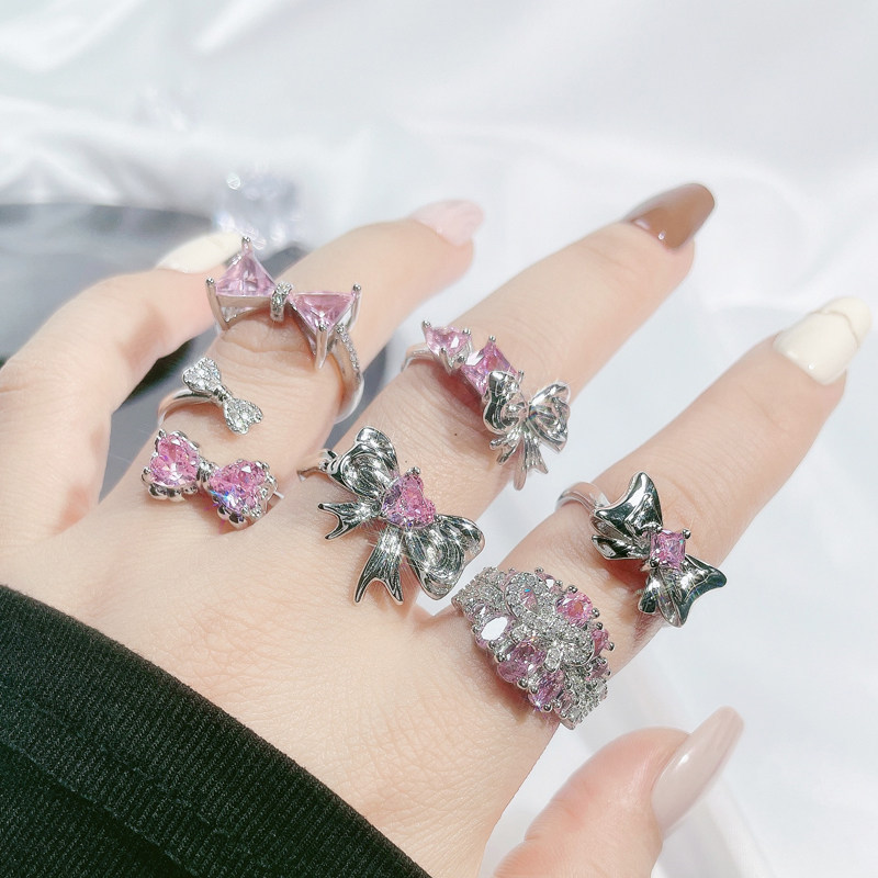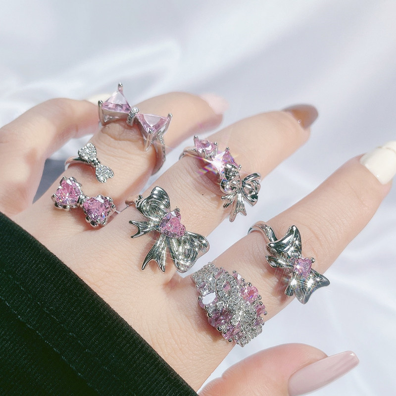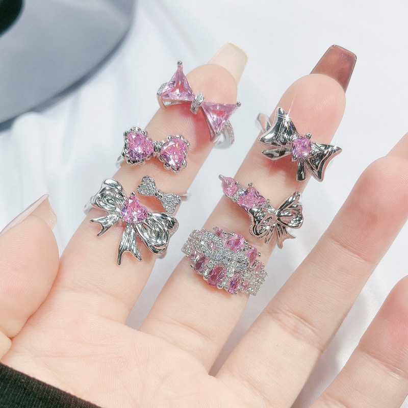甜酷气质蝴蝶结粉钻锆石开口戒指女ins冷淡风小众设计高级感指环