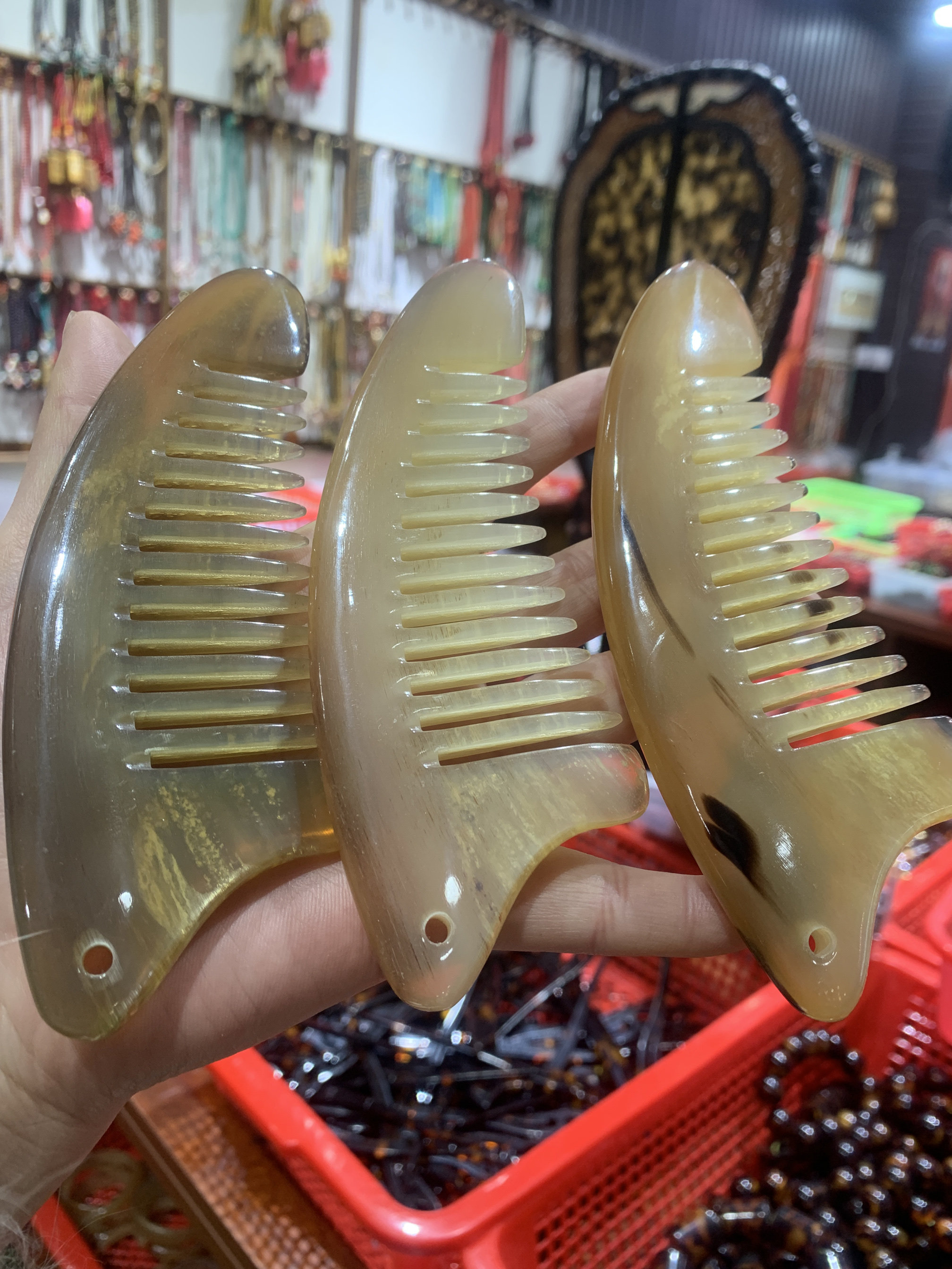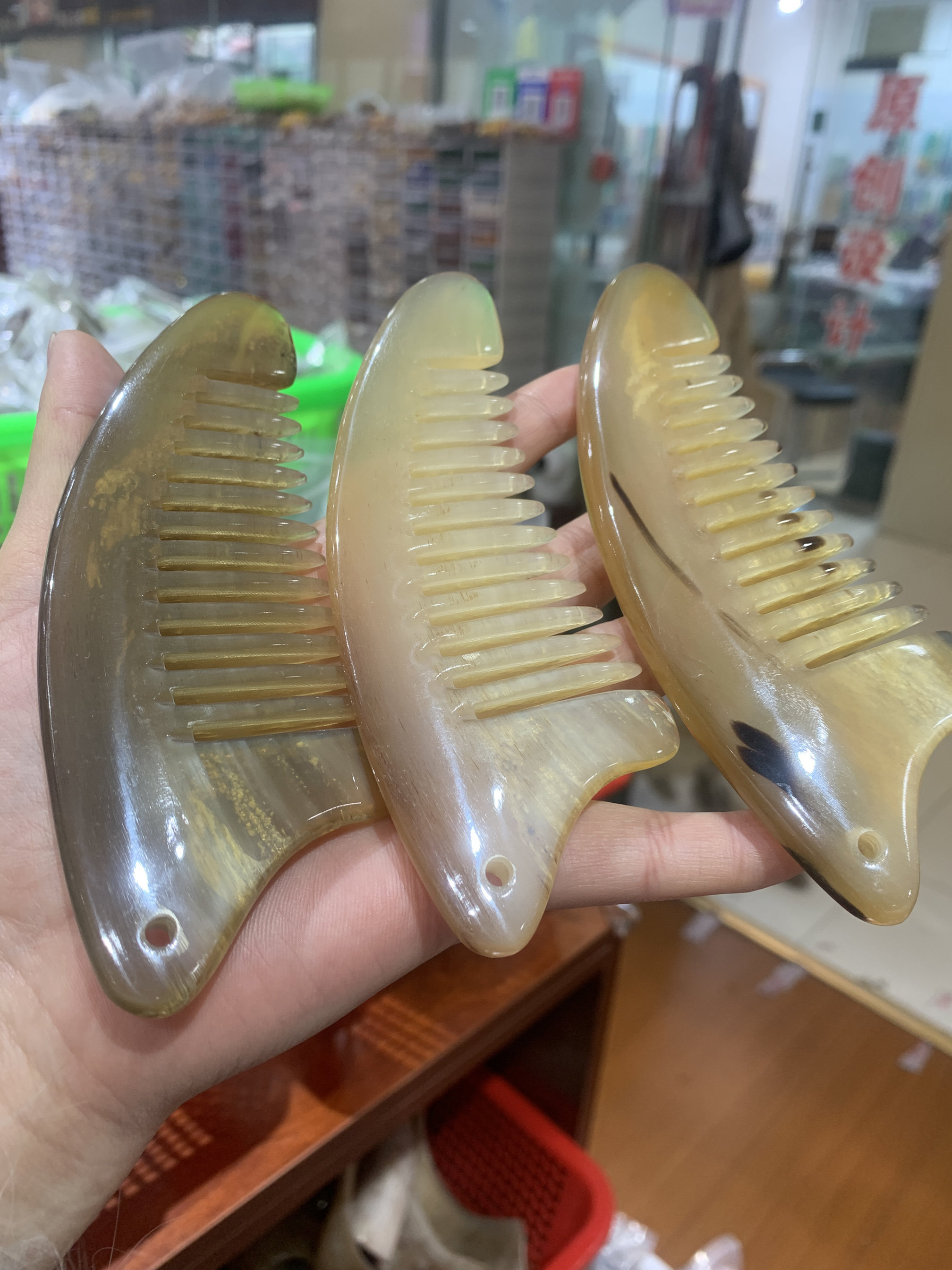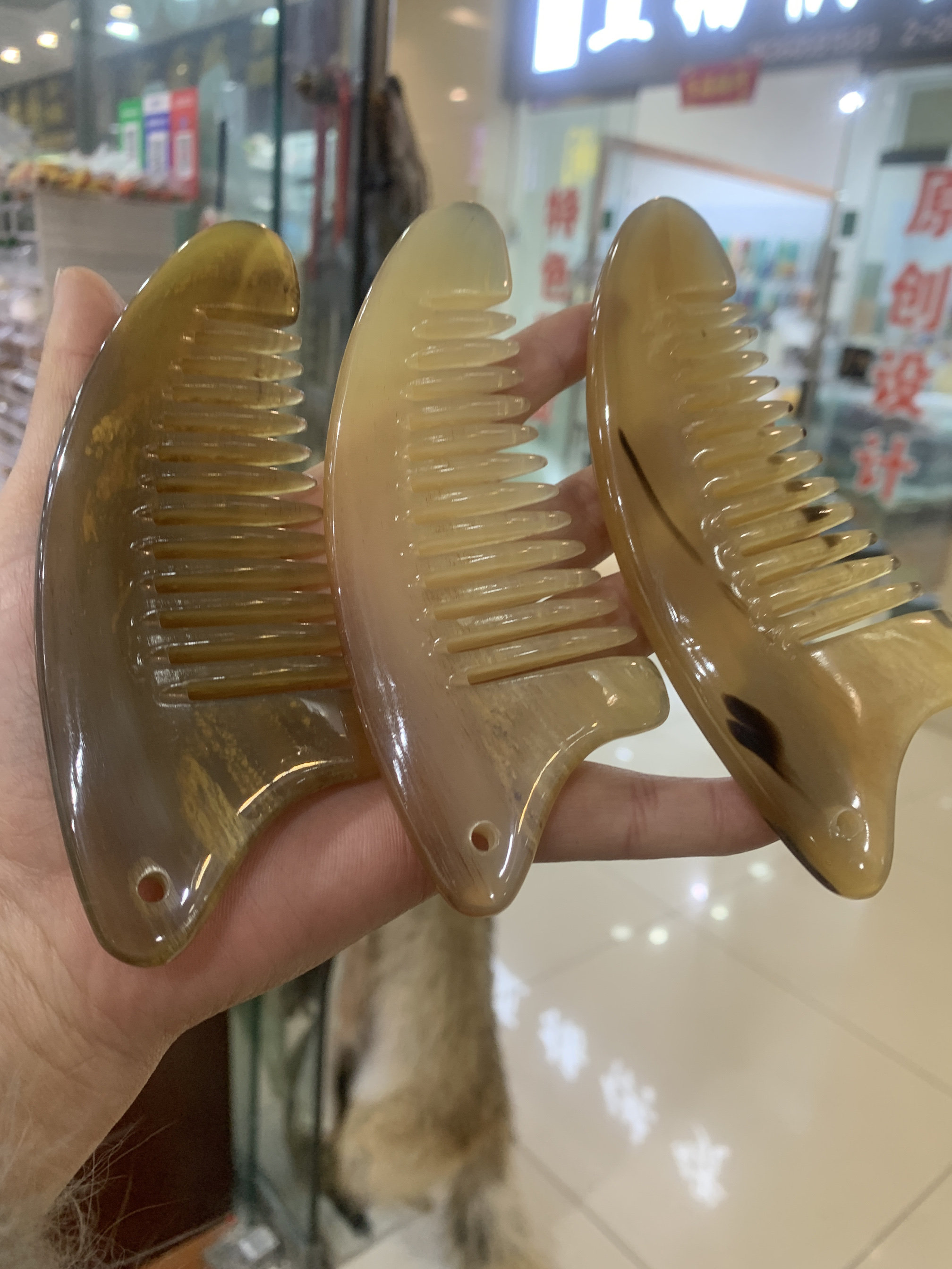 正品天然牛角按摩梳头部经络梳宽齿牛角梳子礼盒装头疗经络梳便携