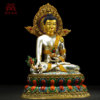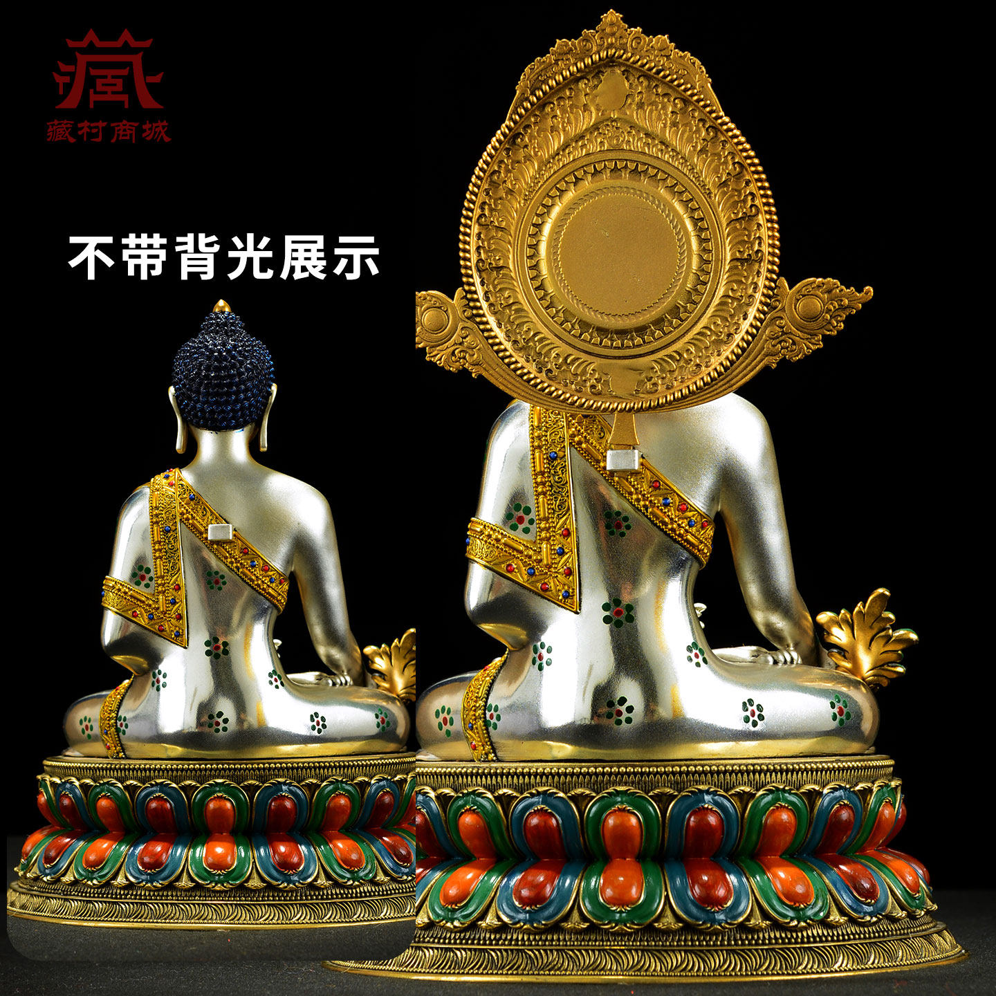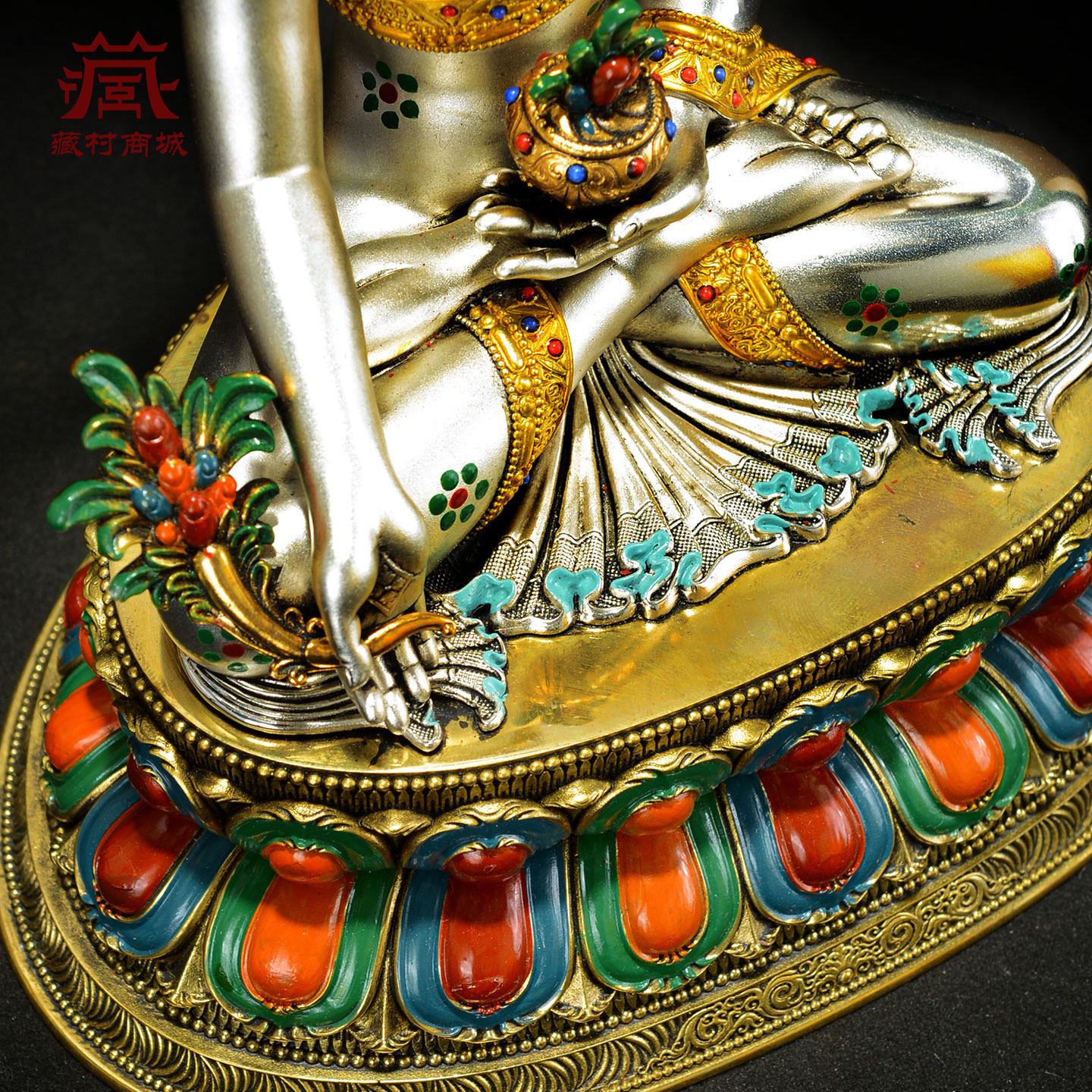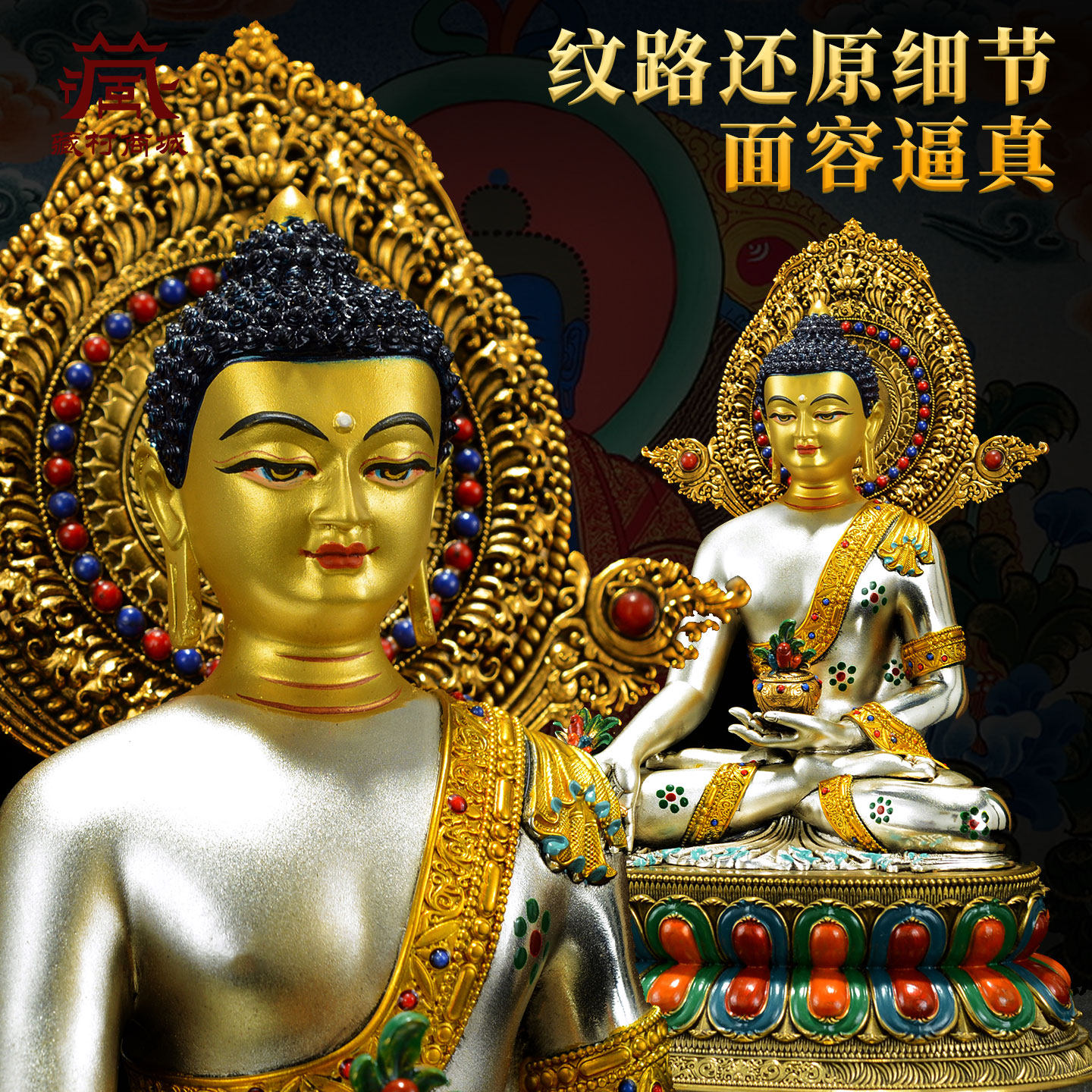藏村彩绘《药师佛》鎏金鎏银《琉璃光如来》铜佛像桌面摆件