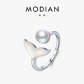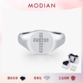 MODIAN摩典S925纯银哑光磨砂戒指女轻奢高级感韩版镶钻花朵开口戒