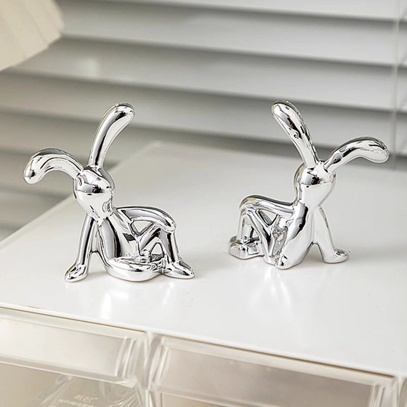 创意网红卡通坐姿长耳兔子摆件轻奢高档客厅电视柜酒柜玄关装饰品
