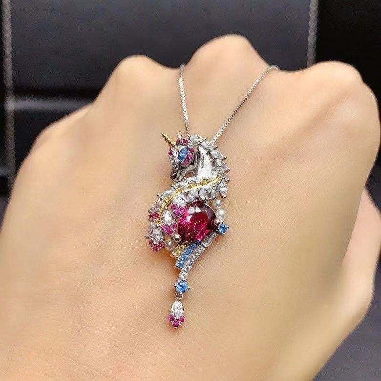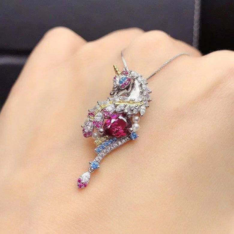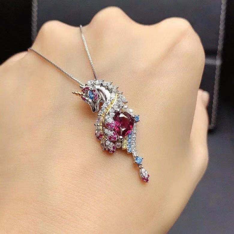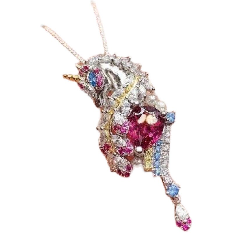 新款哥特风纯银镀18K双色金可爱卡通独角兽吊坠水滴型空托5*7mm